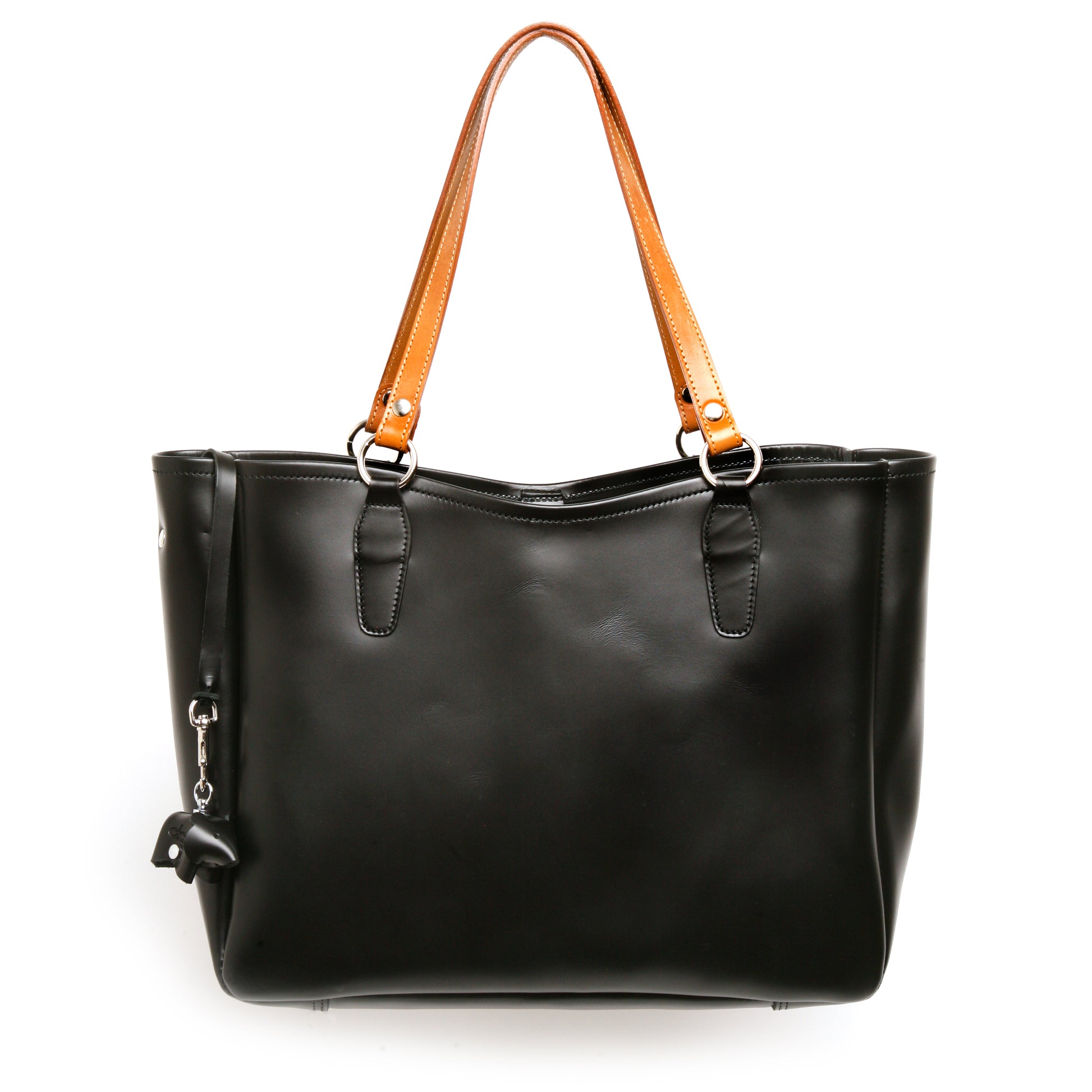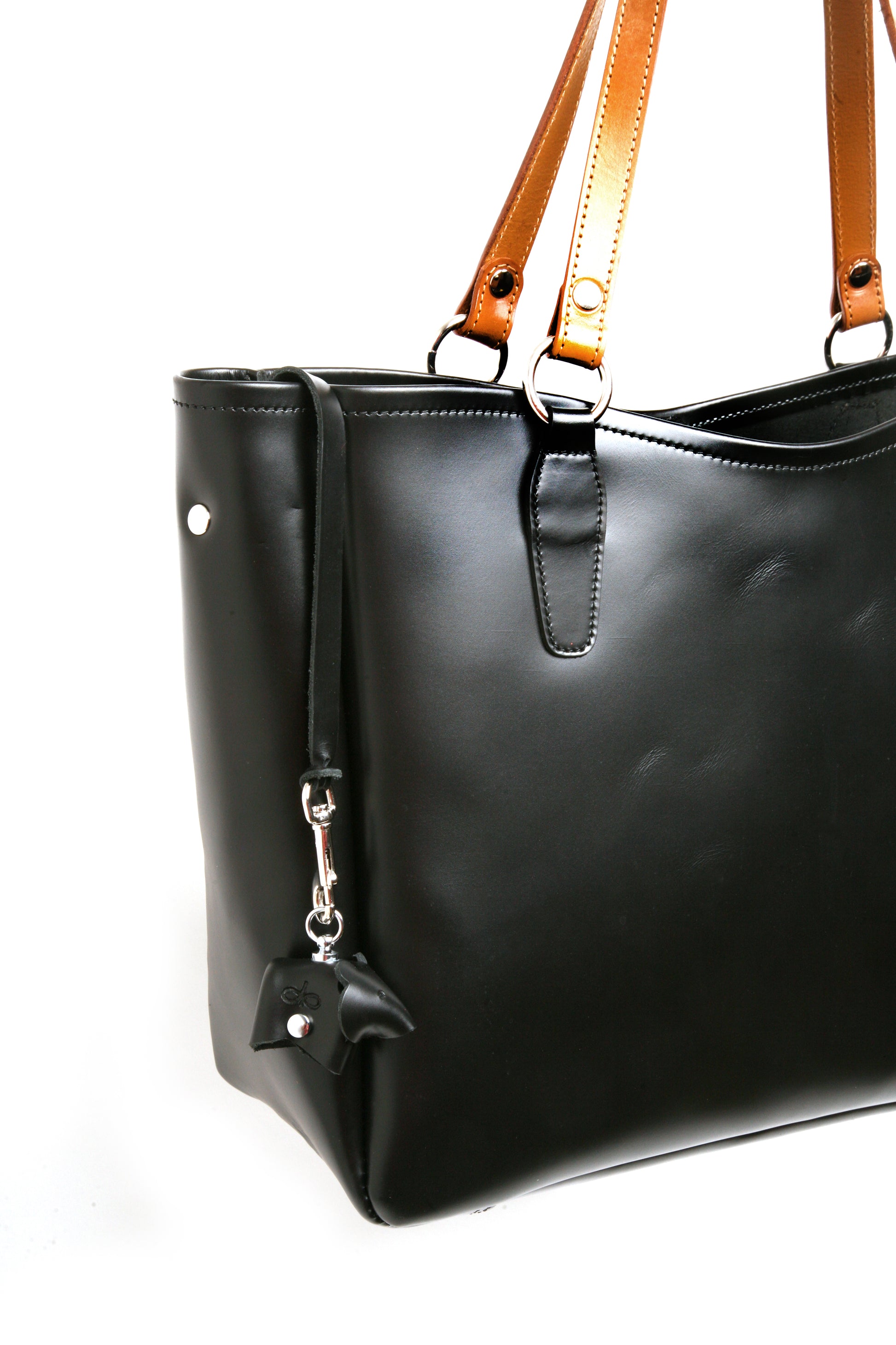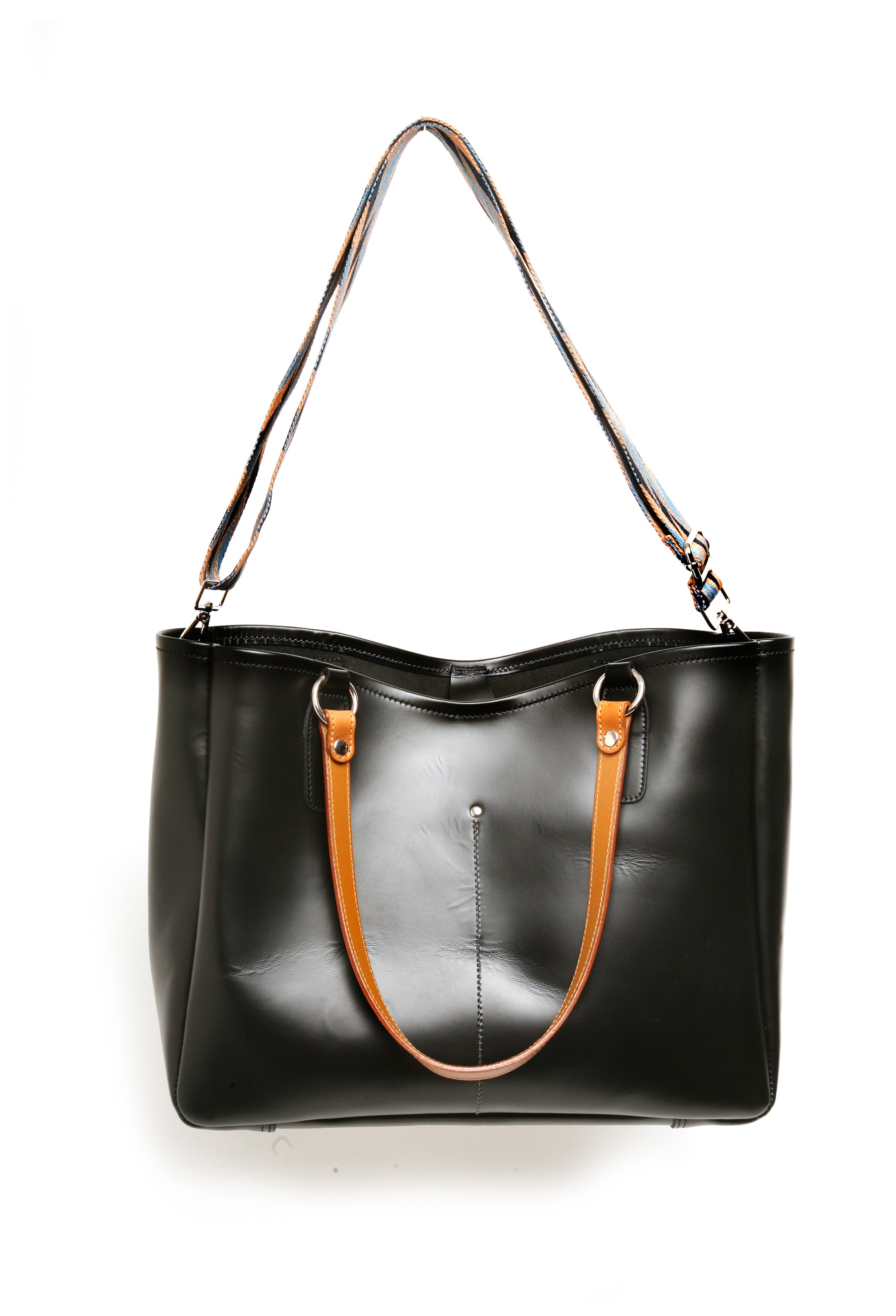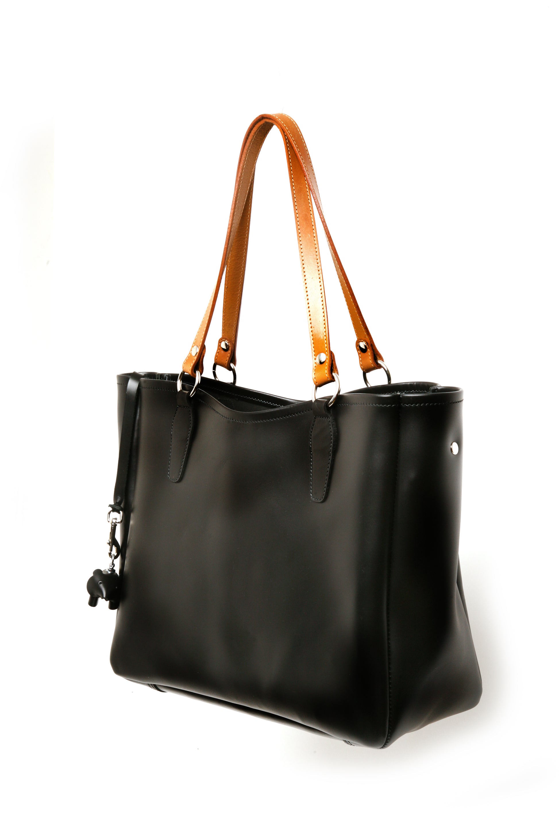 This tote features clean, minimalist lines that add to its functional and stylish design. Its lightweight construction makes it ideal for everyday use. The roomy interior includes a large pocket, card pockets, and a stretch sleeve to hold bottles of all sizes, while the attached key lanyard and King Mountain bear charm provide added convenience. Hidden hardware allows for effortless attachment of a crossbody shoulder strap. Firm boot leather is used for the main body of the tote while supple English bridle tan is used for the finished shoulder straps. All JMB bags are bench made in small, limited batches at the King Mountain atelier located in the foothills of the Canadian shield.