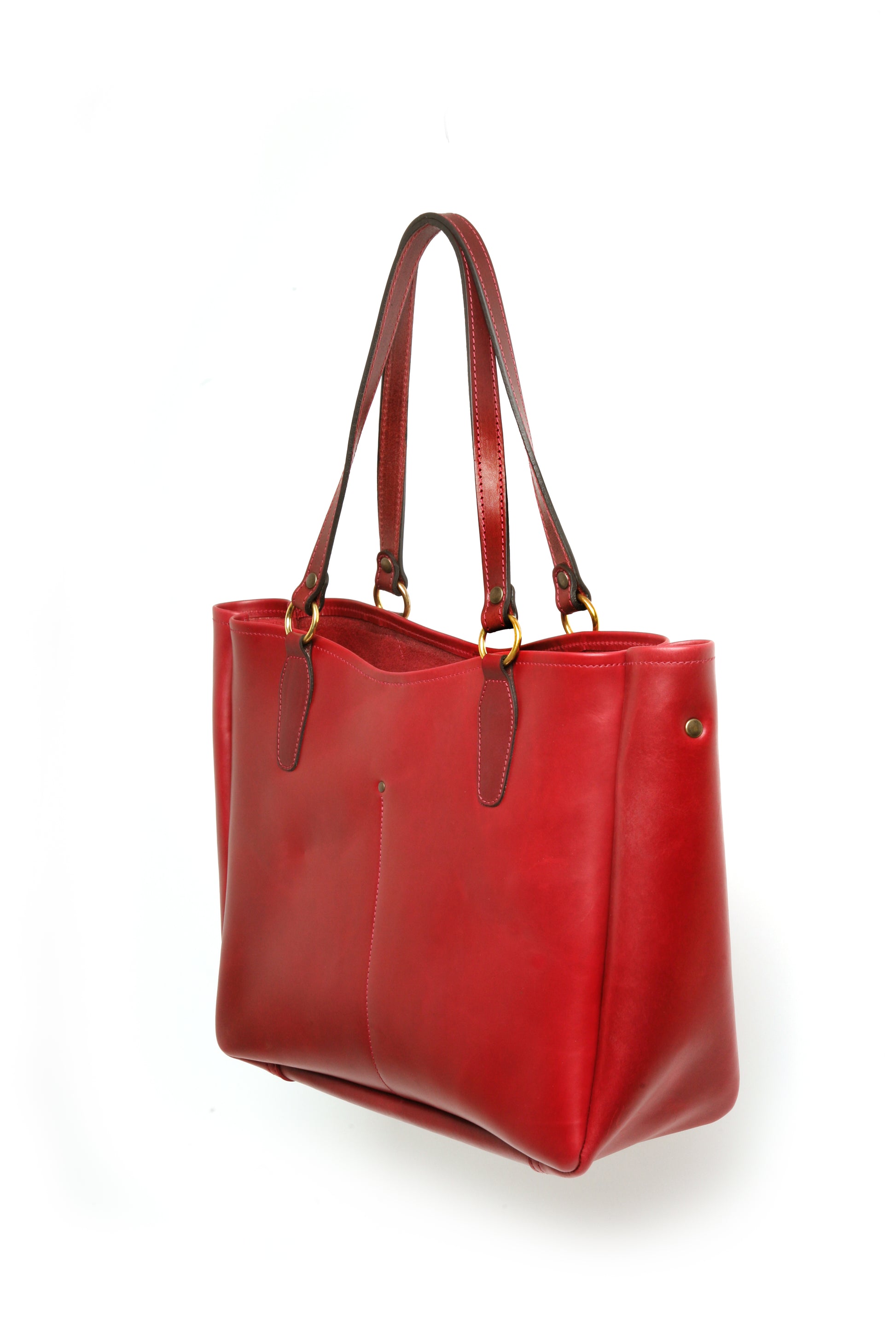 This tote features clean, minimalist lines that add to its functional and stylish design. Its lightweight construction makes it ideal for everyday use. The roomy interior includes a large pocket, card pockets, and a stretch sleeve to hold bottles of all sizes, while the attached key lanyard and King Mountain bear charm provide added convenience. Hidden hardware allows for effortless attachment of a crossbody shoulder strap. Firm boot leather is used for the main body of the tote while supple English bridle tan is used for the finished shoulder straps. Hardware is brass. All JMB bags are bench made in small, limited batches at the King Mountain atelier located in the foothills of the Canadian shield.