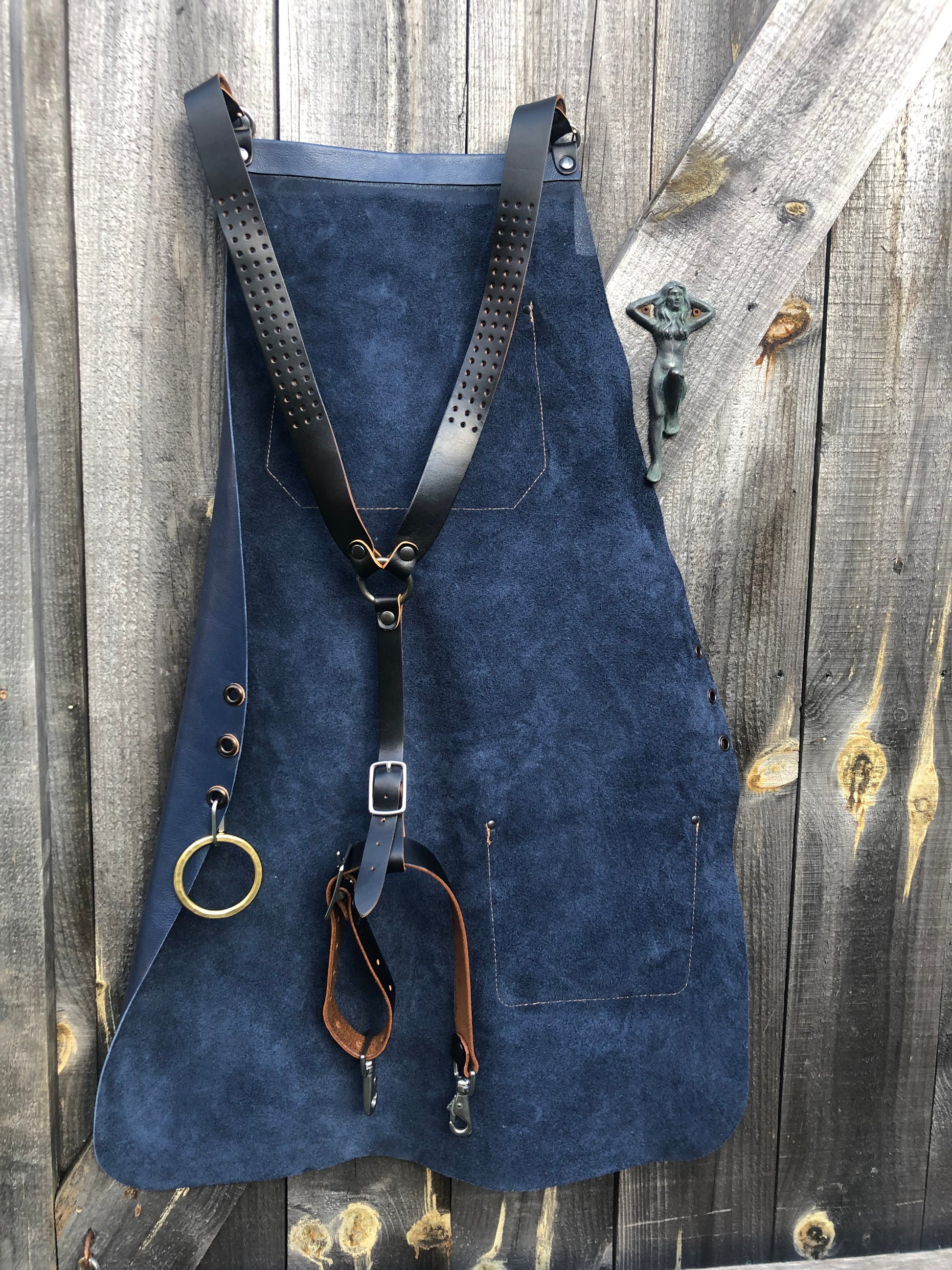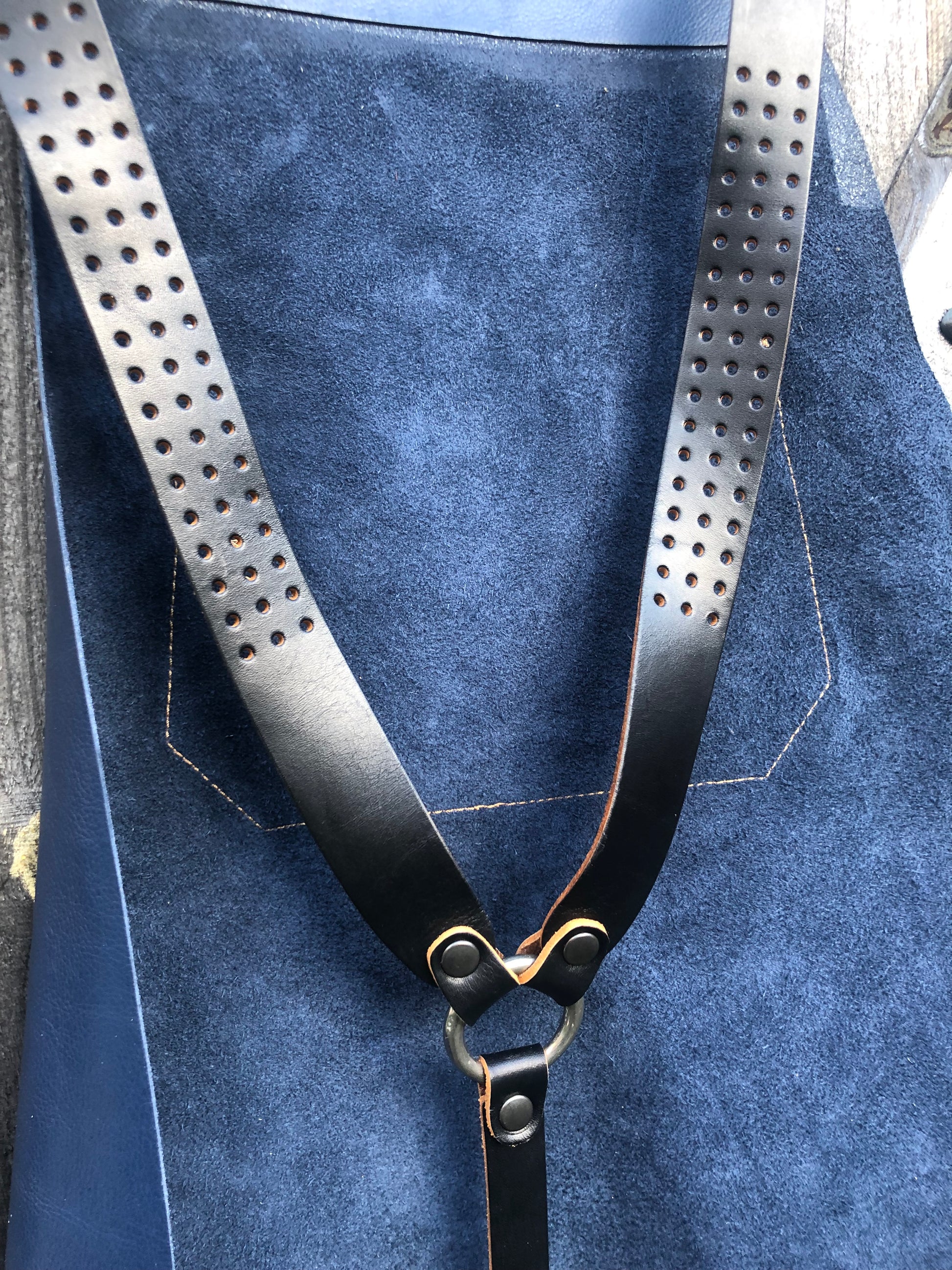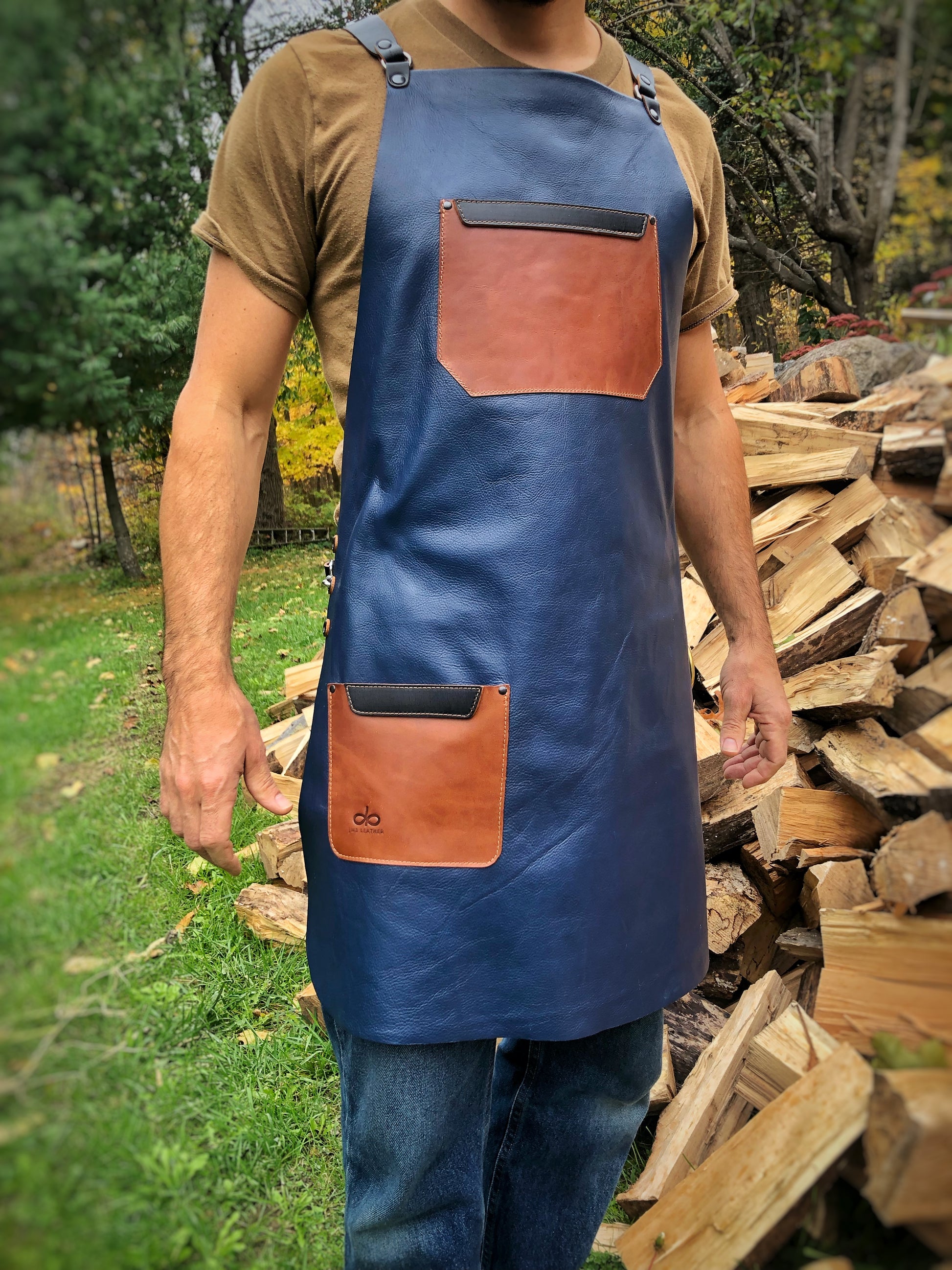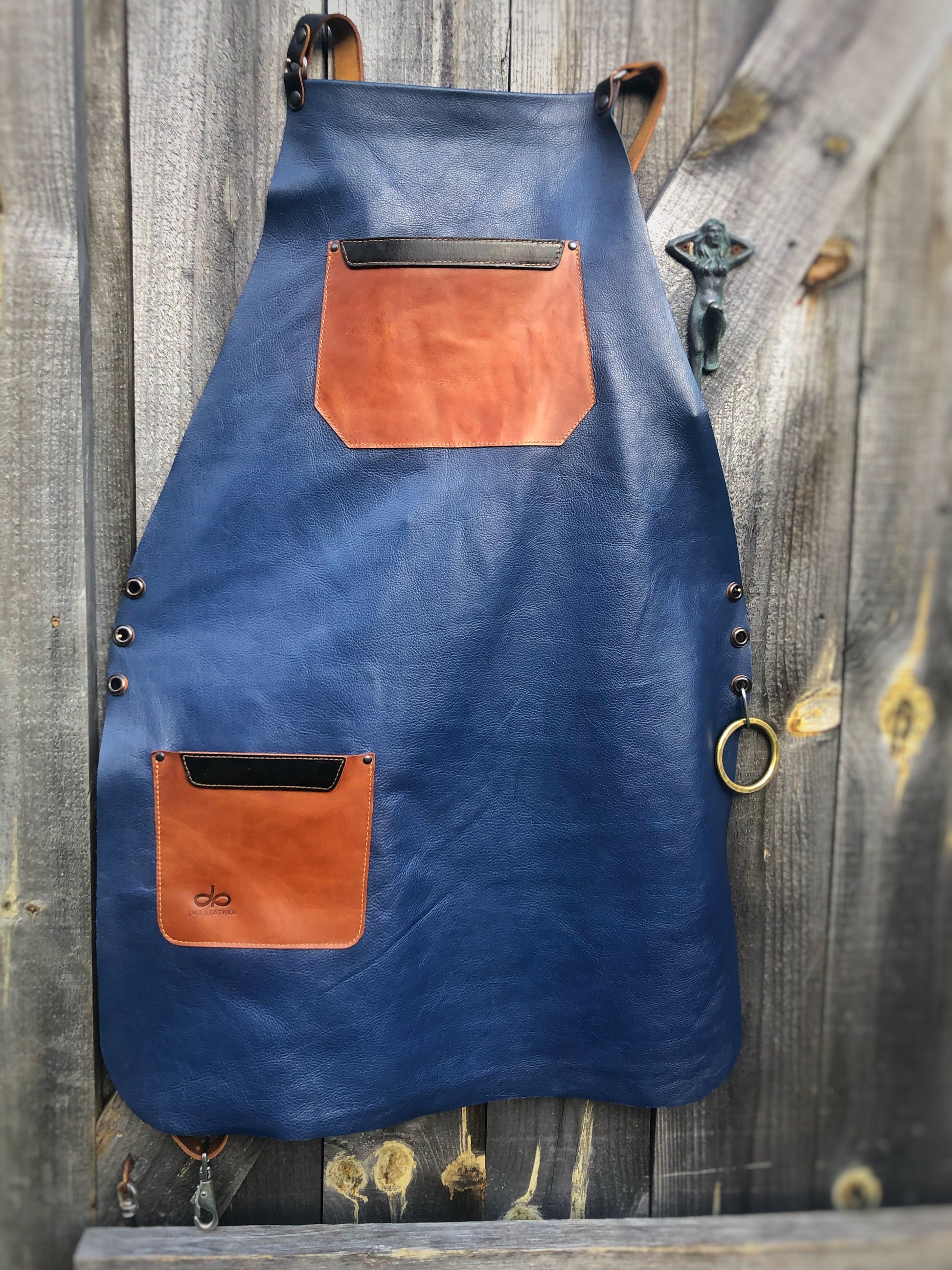 Leather Apron blue and tan
