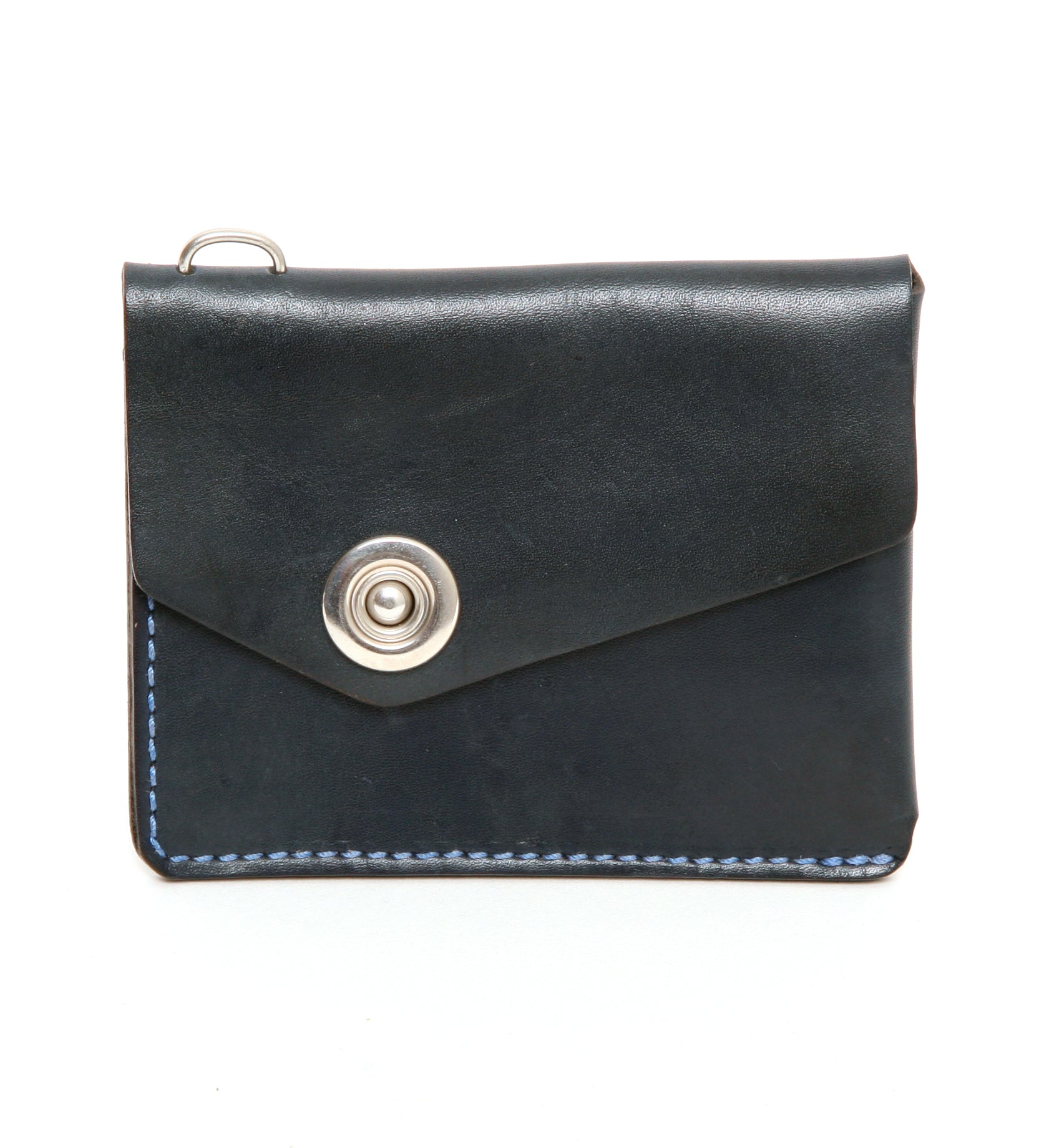 The CODA wallet is made of one piece of 4oz leather and stitched up with heavy nylon thread. It features carefully burnished edges and a solid brass grommet snap from Japan. It has a stainless steel loop integrated to attach the 18" lanyard. Its simplicity and asymmetric design are deceiving to just how much it can hold while keeping your pocket bulk to a minimum.