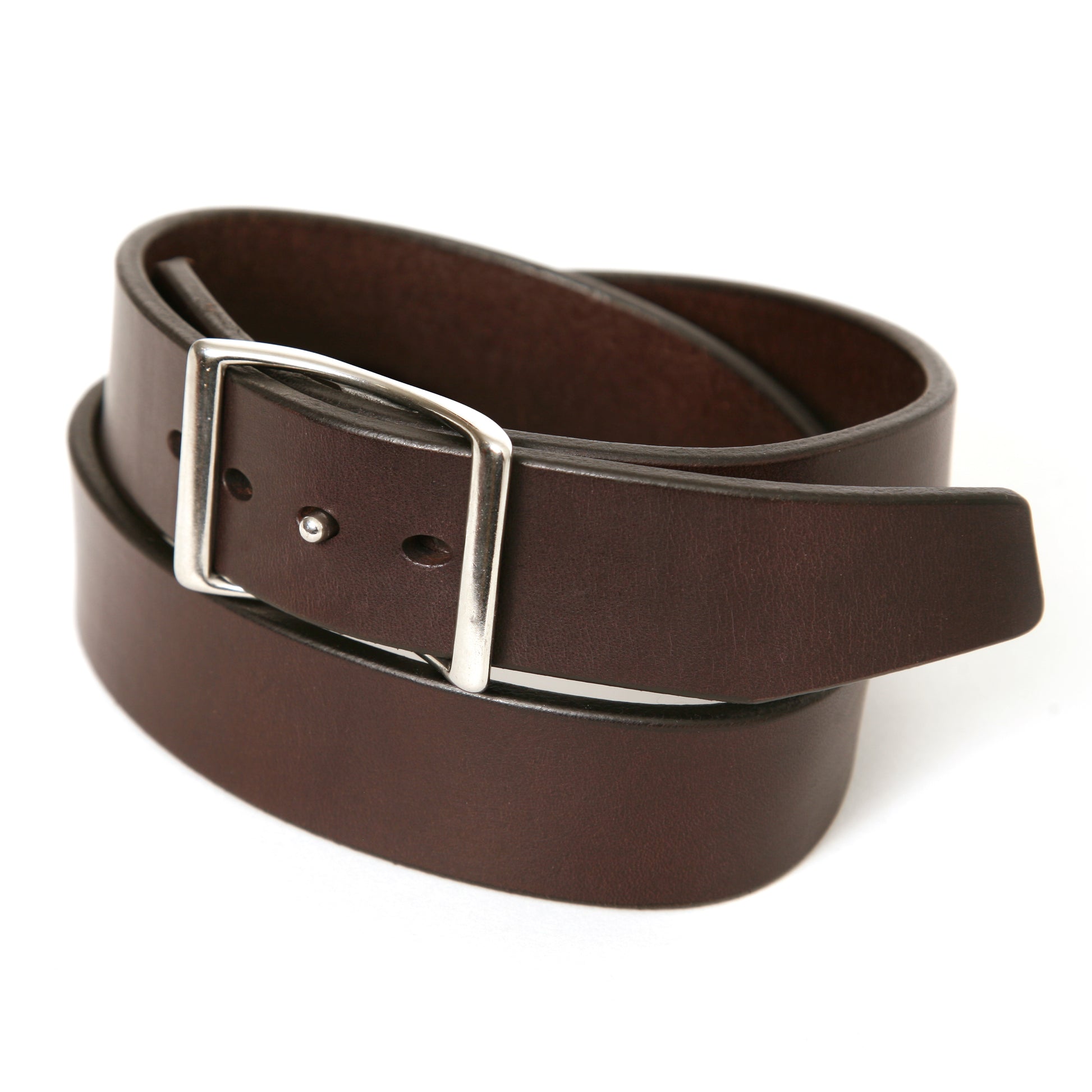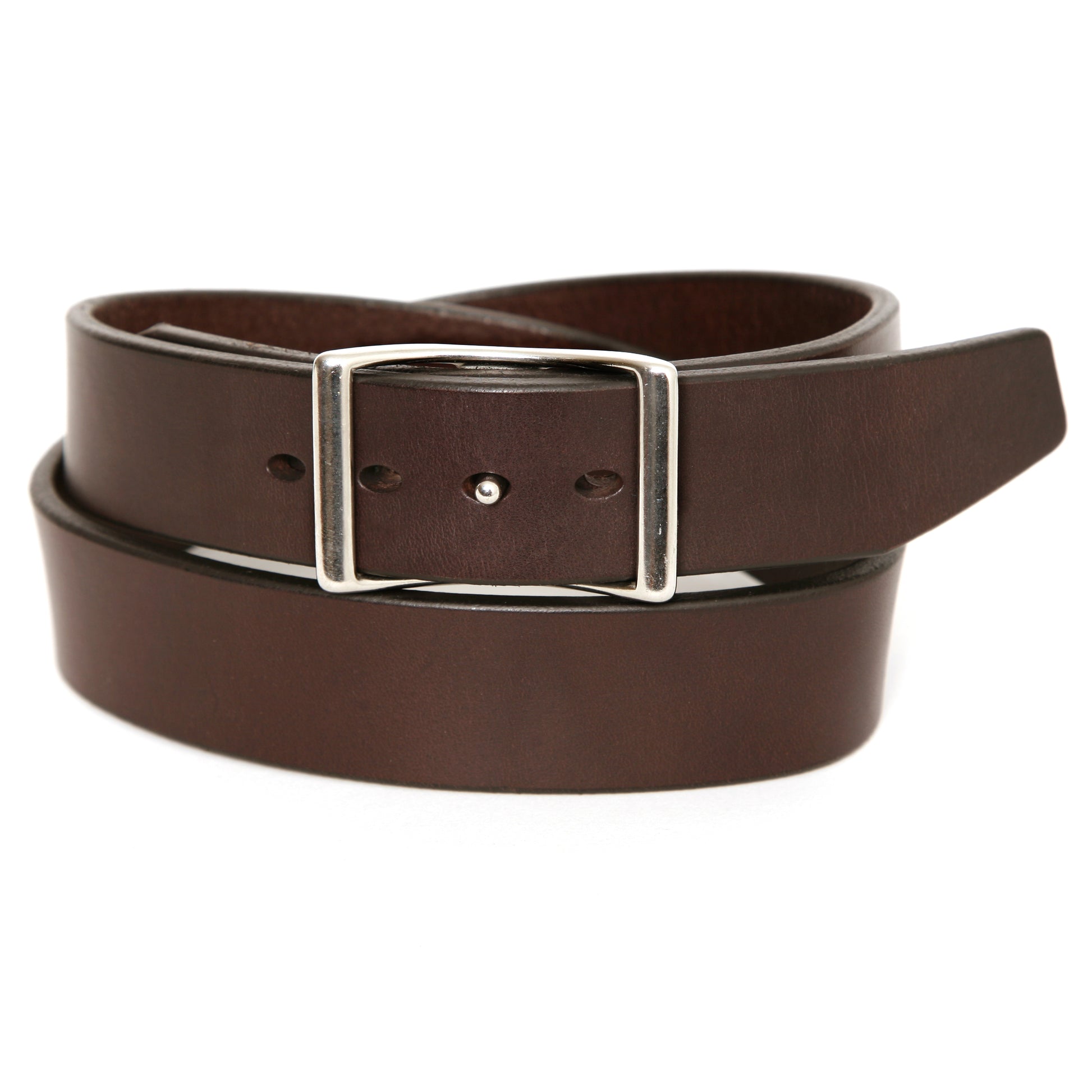 This clean designed belt is held together with a solid stainless steel conway buckle. The width is a standard jean width 1.5" and features my 6-step hand finished edges. I make it to size in 2" increments. If you wear a size 32" jean, then you would order a 32" - and it would fit in the center of the holes with adjustment either way. This buckle allows you adjust it from the buckle end as well as the tip for a perfect custom fit. It is shown in 1.5" width, but it can be ordered in 1.25" as well as 1.75" for those who want wide.