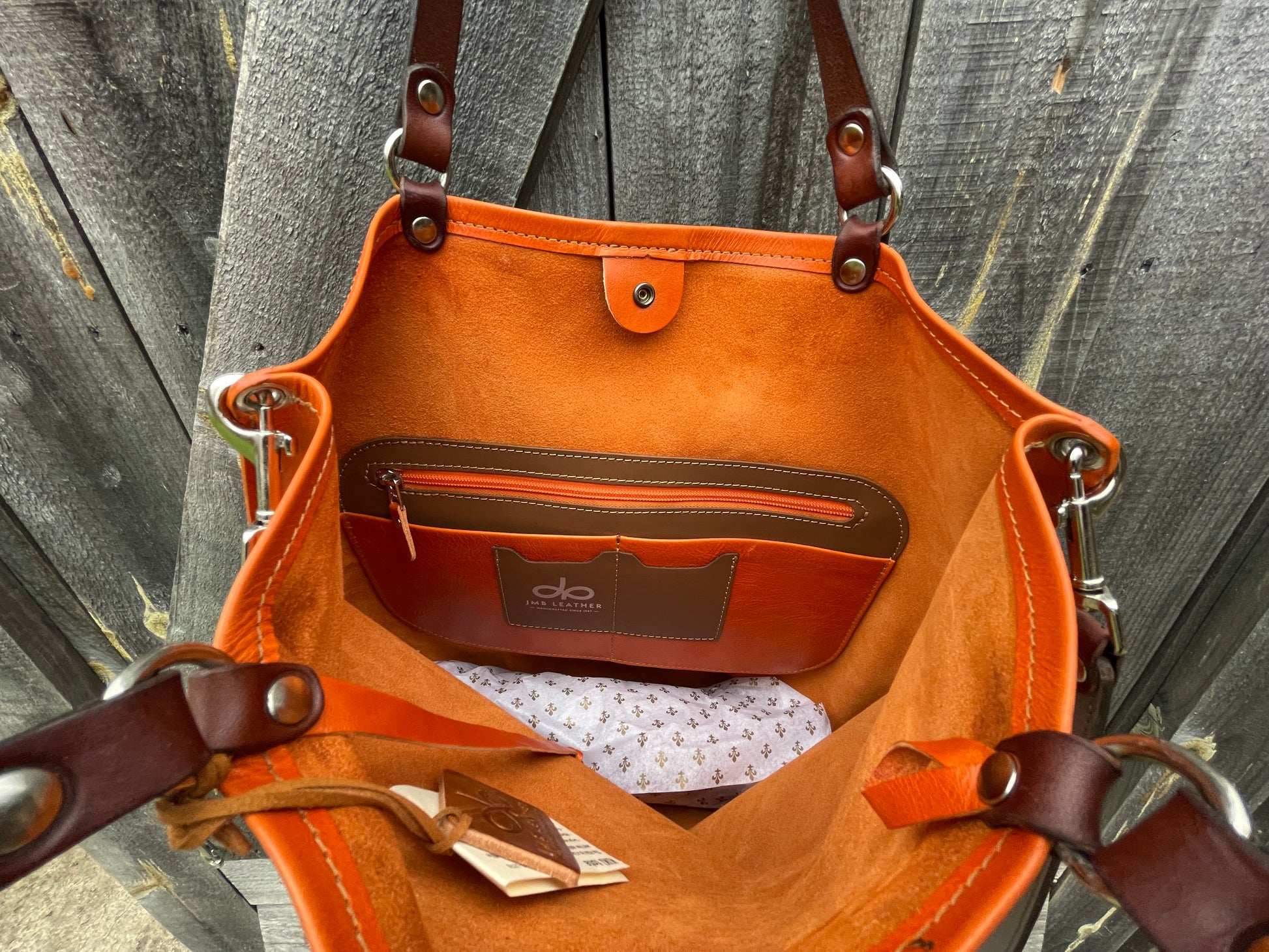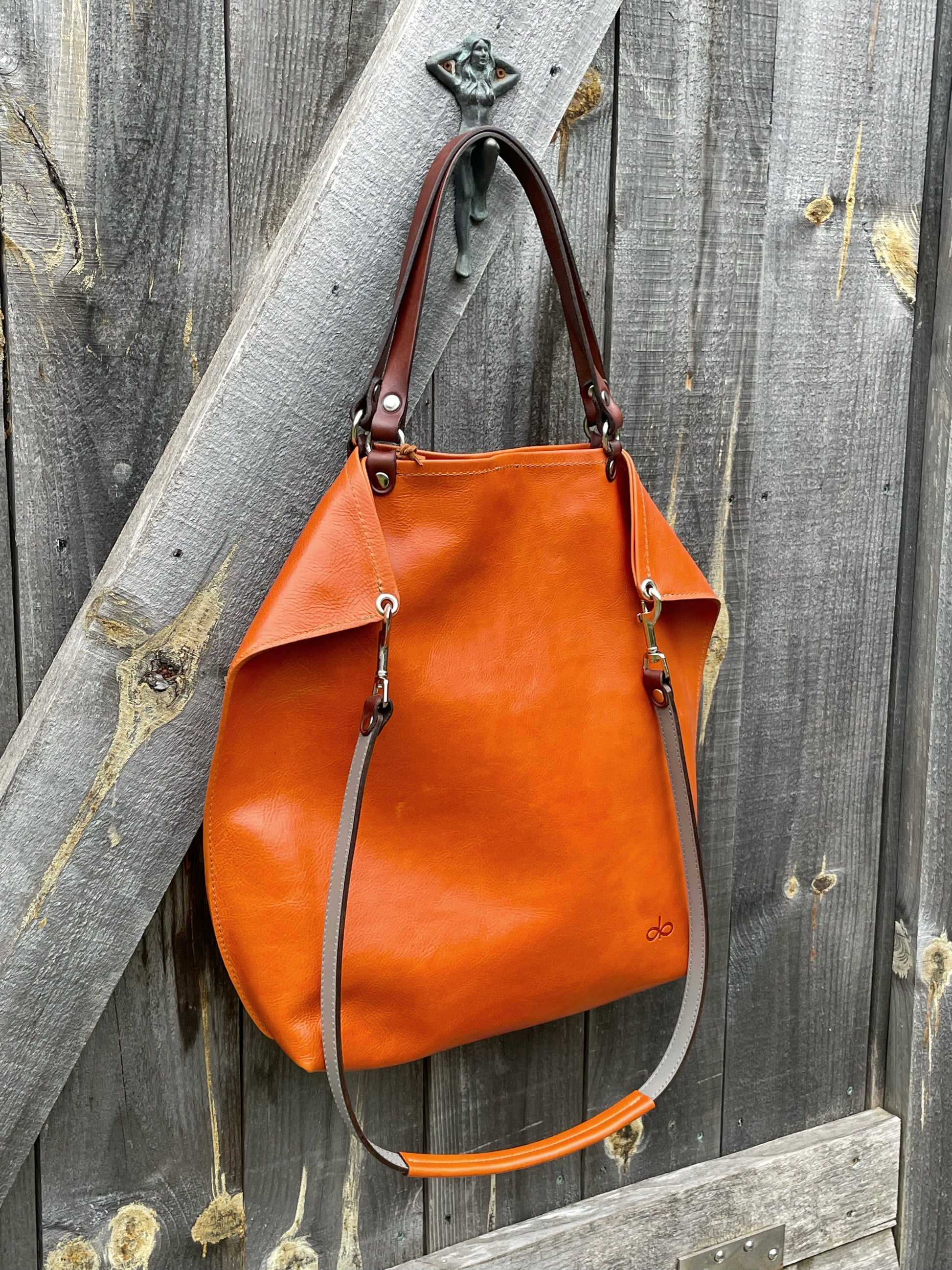 The KIKI tote is a fashionable and modern accessory, suitable for everyday use. Its slim silhouette is perfect for day-to-day activities. The inside includes a large zippered compartment, as well as smaller patch pockets. There is also a convenient loop for hanging glasses and a long attached key lanyard for effortless security. When worn over the shoulder, the crossbody strap creates a graceful, draped look. The supple Italian leather is skillfully hand-finished and complemented by the English bridle shoulder strap. All JMB pieces are bench made in small limited runs in the King mountain atelier located in the foothills of the Canadian shield.