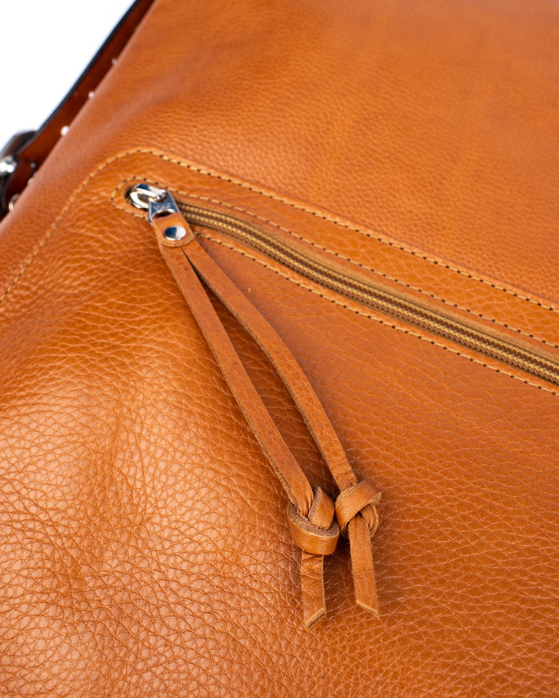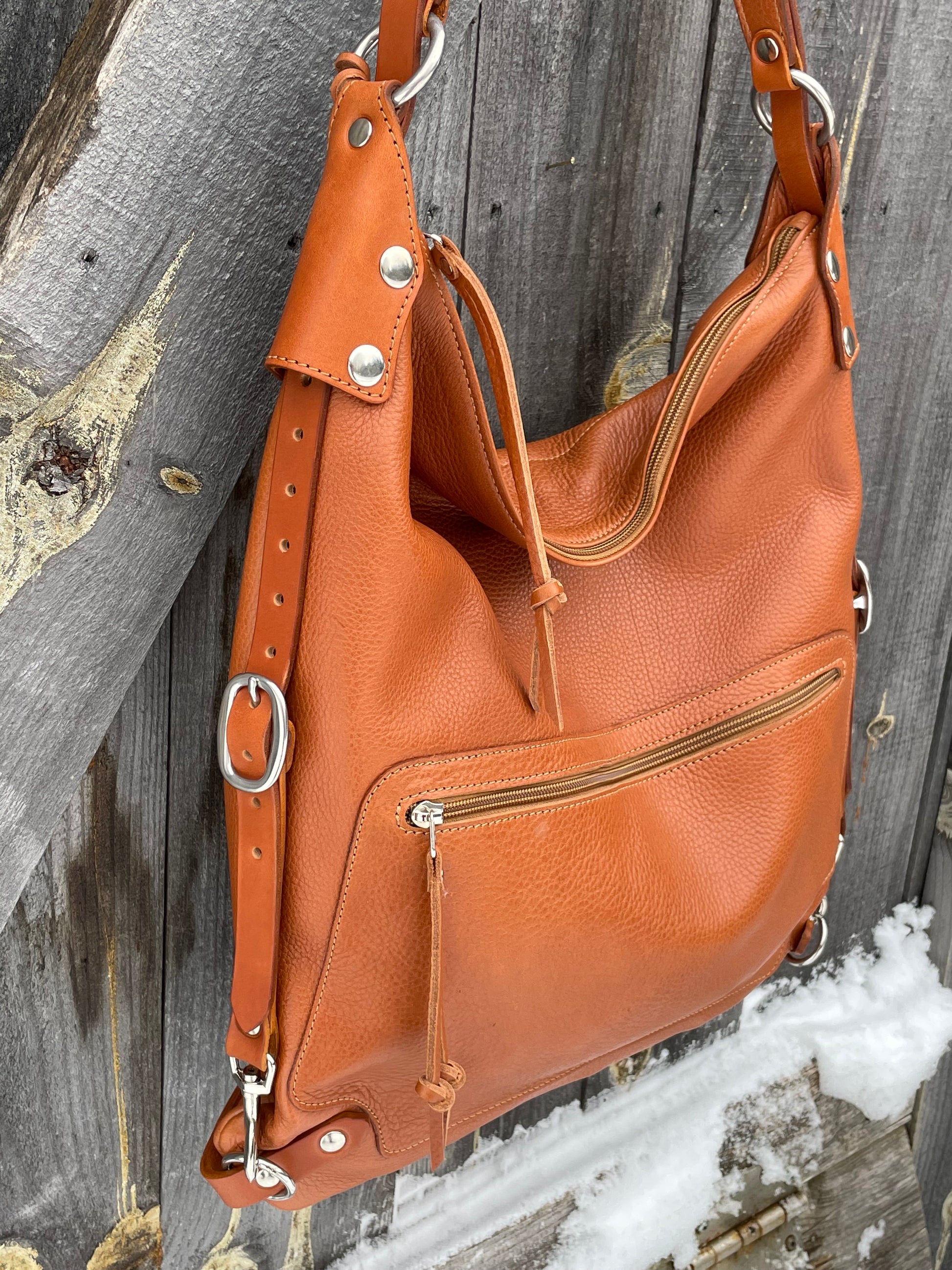 ** One only ** The Villa is a chic backpack and shoulder bag designed all-in-one. It carries a laptop and all your daily necessities with plenty of room to spare. There is one large zipper pocket for quick access on the front of the bag and a large zipper pocket with patch pockets on the upper inside back panel. Securely attached to one of the strap-rings is a long discreet key lanyard that is easily stowed and accessed. The Villa is made of Italian full grain leather and strapped up with English bridle leather. The hardware is solid, cast equestrian silver. All the edges are carefully hand finished making this a timeless and functional piece that will serve and age gracefully for many years to come.