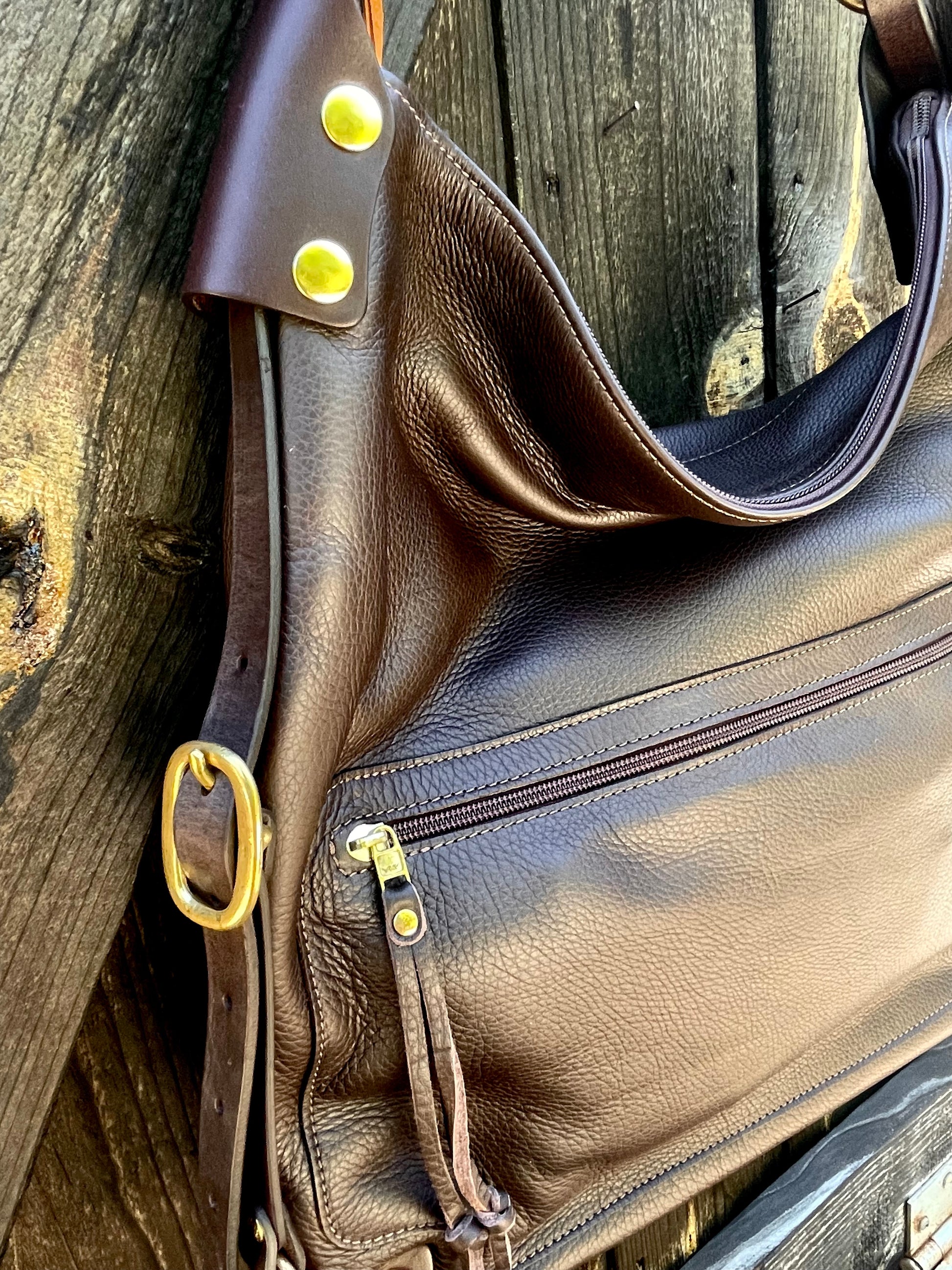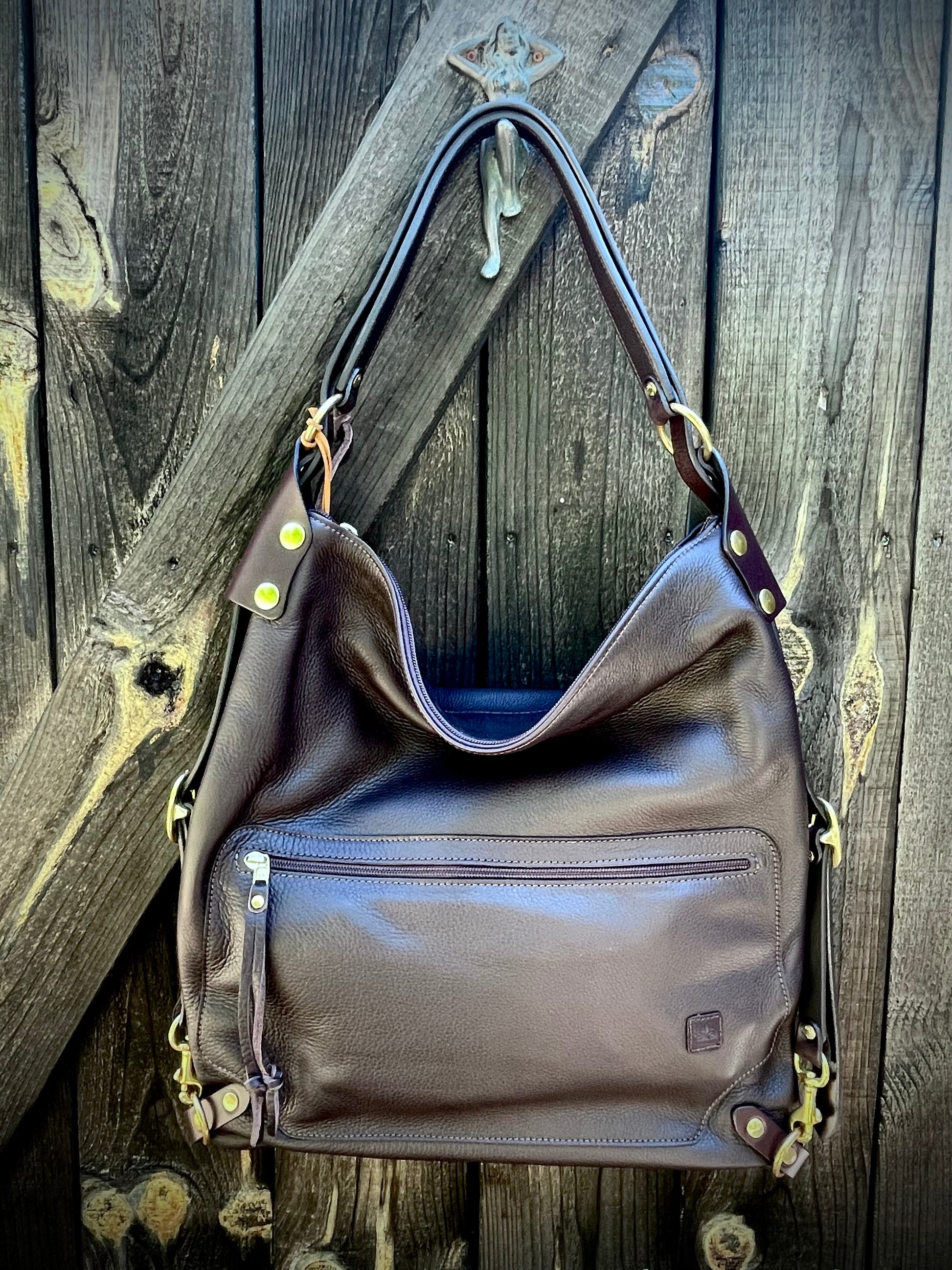 The Villa is a chic backpack and shoulder bag designed all-in-one. It carries a laptop and all your daily necessities with plenty of room to spare. There is one large zipper pocket for quick access on the front of the bag and a large zipper pocket with patch pockets on the upper inside back panel. Securely attached to one of the strap-rings is a long discreet key lanyard that is easily stowed and accessed. The Villa is made of Italian full grain leather and strapped up with English bridle leather. The hardware is solid, cast equestrian silver. All the edges are carefully hand finished making this a timeless and functional piece that will serve and age gracefully for many years to come.