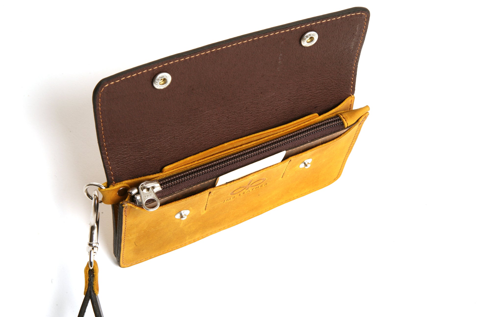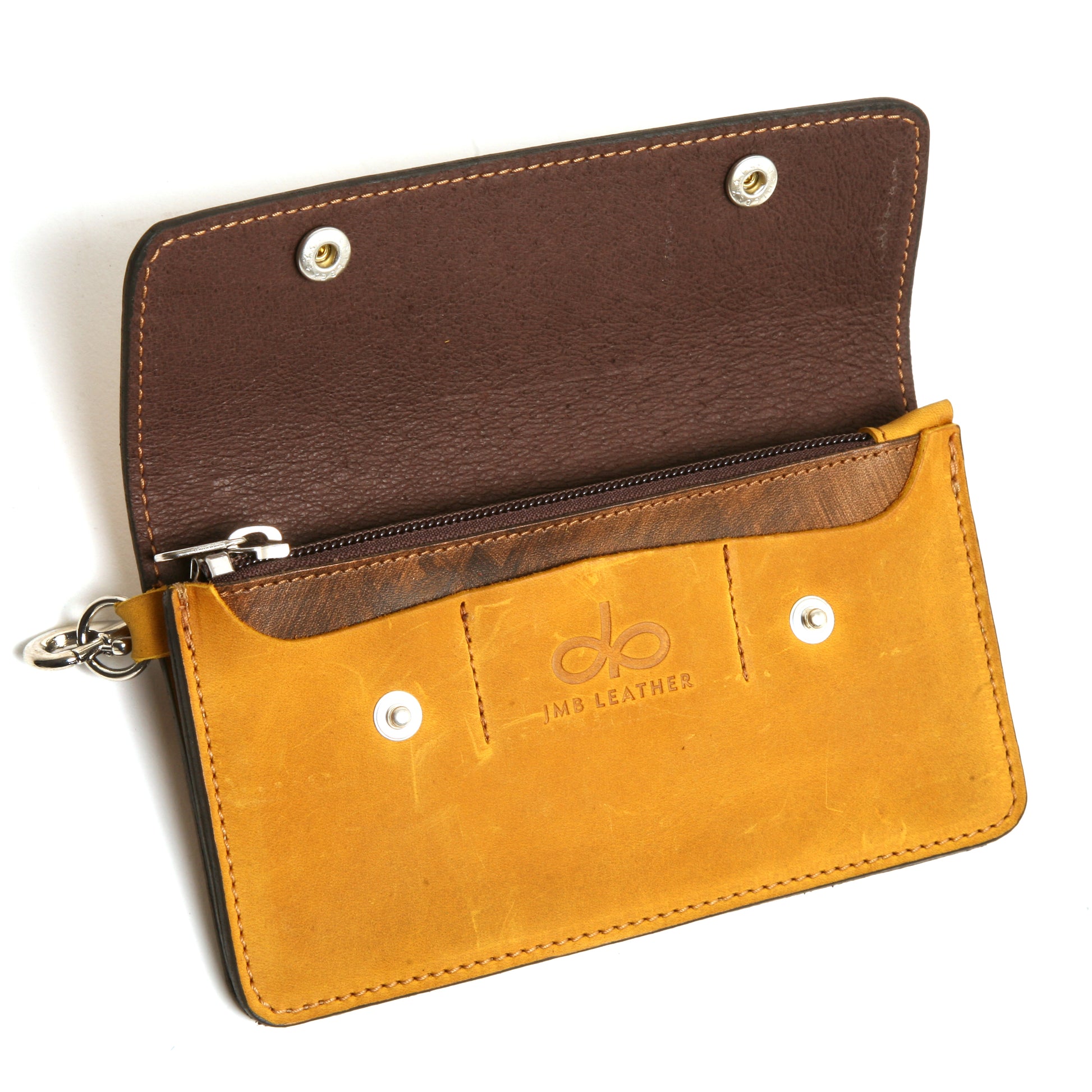 The Dawn Wallet is the perfect solution for any fashionista looking for a spacious, stylish and secure wallet. Crafted from colourful crazy horse leather with burnished and polished edges, this wallet features six compartments for all your needs. It comes with a removable wristlet strap and securely closes on metal buttons for an added touch of glamour.