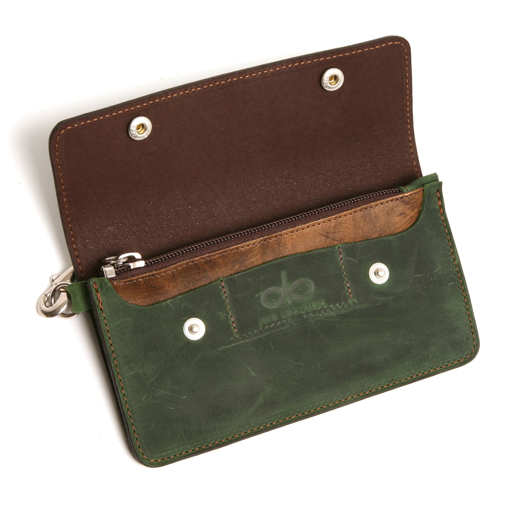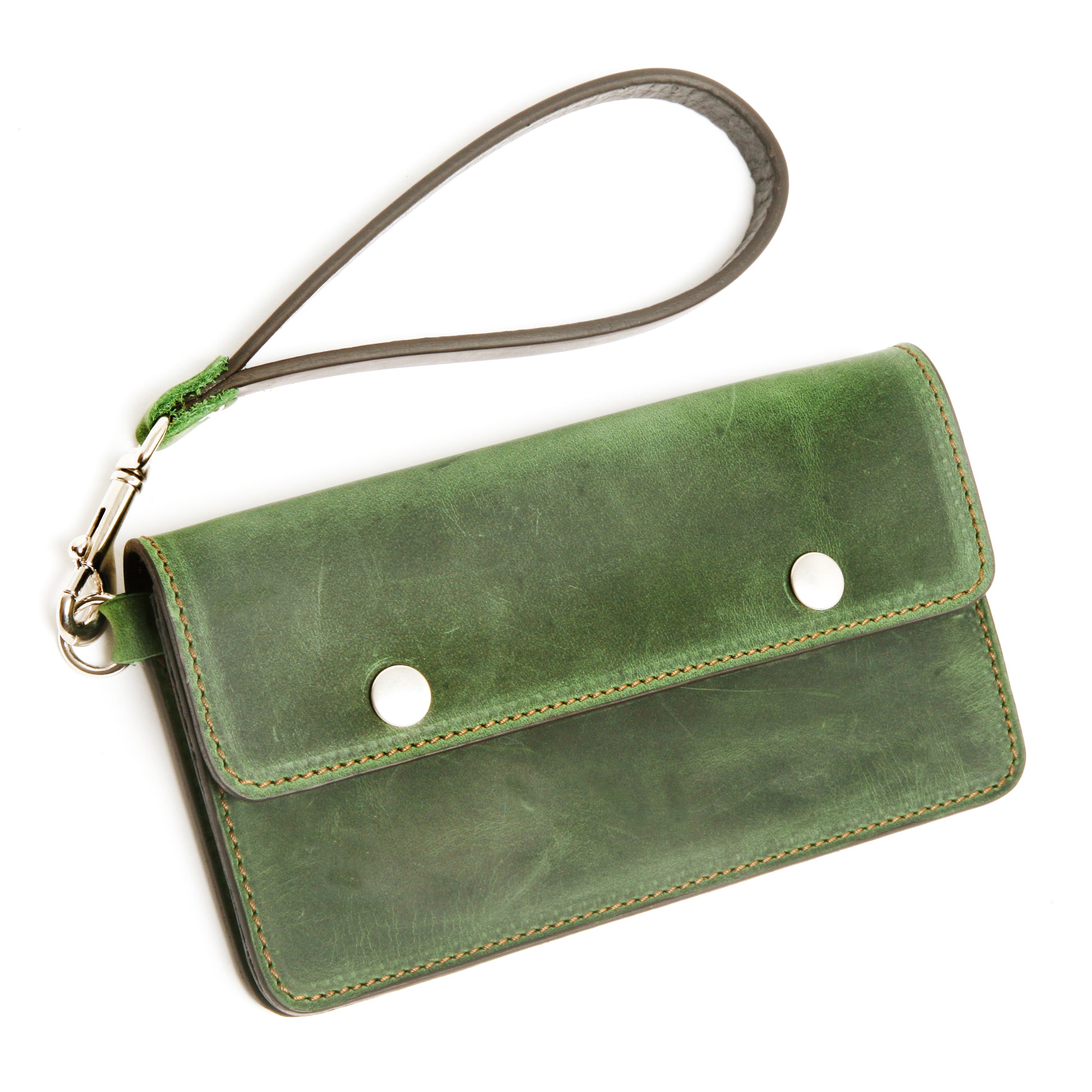 The Dawn Wallet is the perfect solution for any fashionista looking for a spacious, stylish and secure wallet. Crafted from colourful crazy horse leather with burnished and polished edges, this wallet features six compartments for all your needs. It comes with a removable wristlet strap and securely closes on metal buttons for an added touch of glamour.