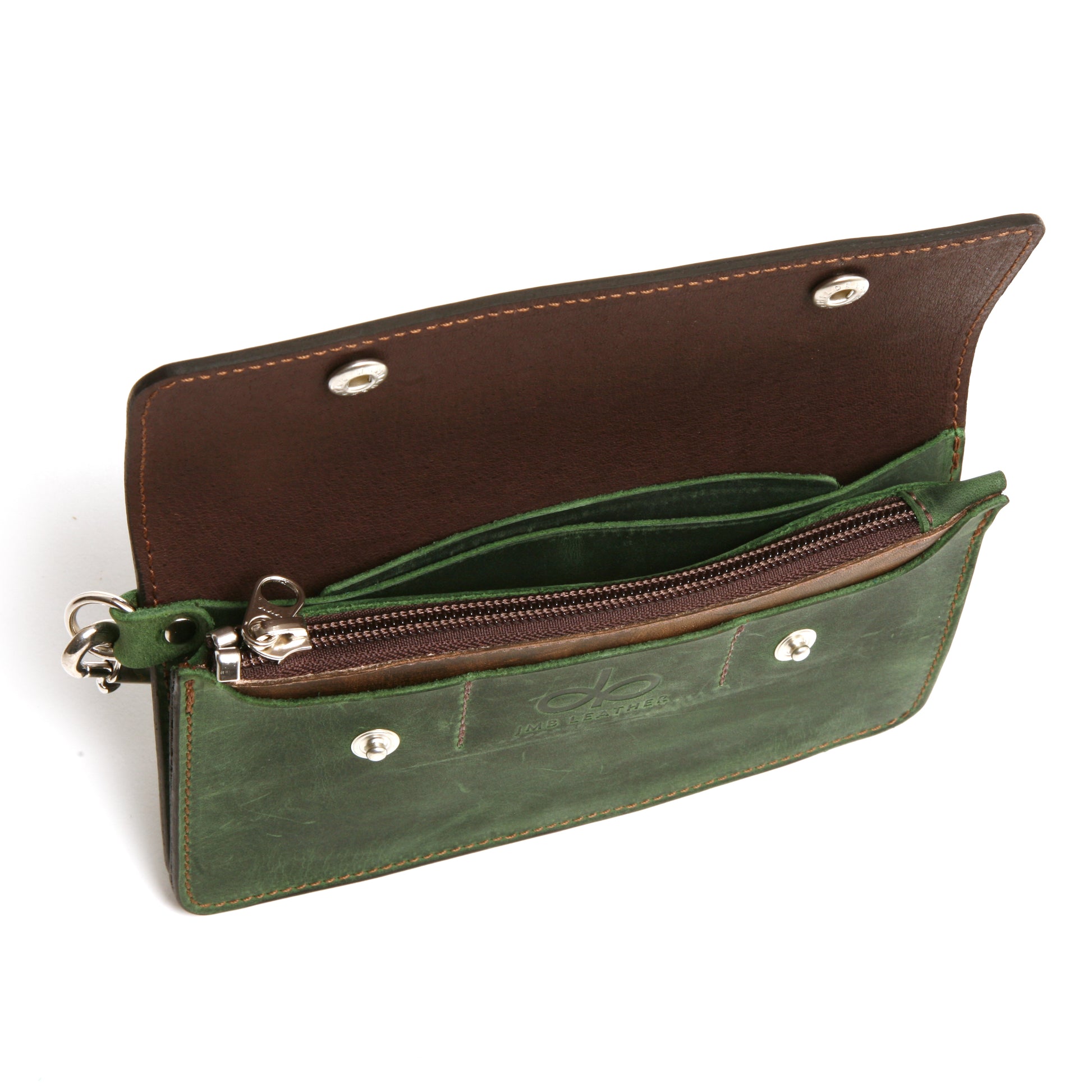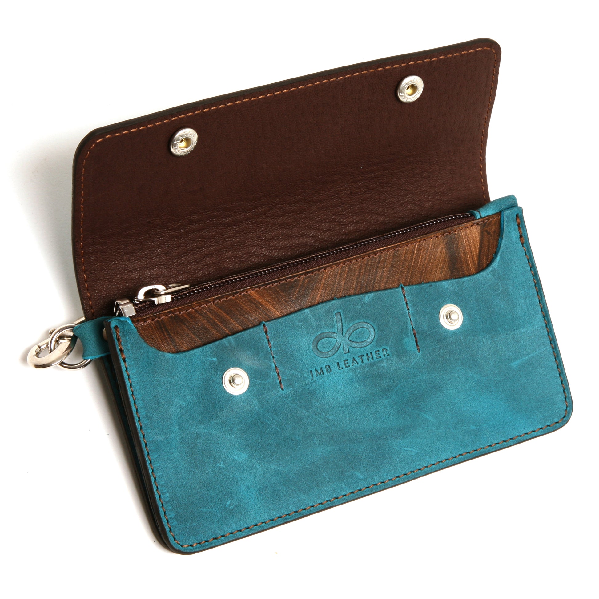 The Dawn Wallet is the perfect solution for any fashionista looking for a spacious, stylish and secure wallet. Crafted from colourful crazy horse leather with burnished and polished edges, this wallet features six compartments for all your needs. It comes with a removable wristlet strap and securely closes on metal buttons for an added touch of glamour.