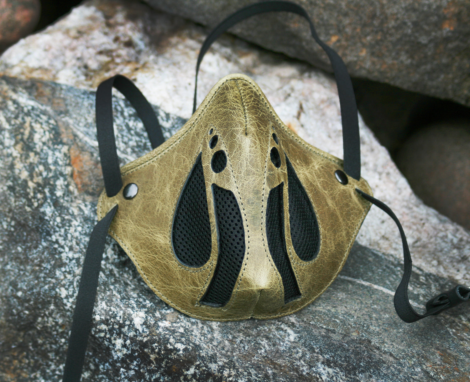 The Falcon is a bird of prey, sleek and stylish with tapered wings for speed. Lightweight and ease of breathability make it a stylish accessory. This is the larger size for medium to larger faces. The mask measures 5" from top of nose bridge to bottom of chin.