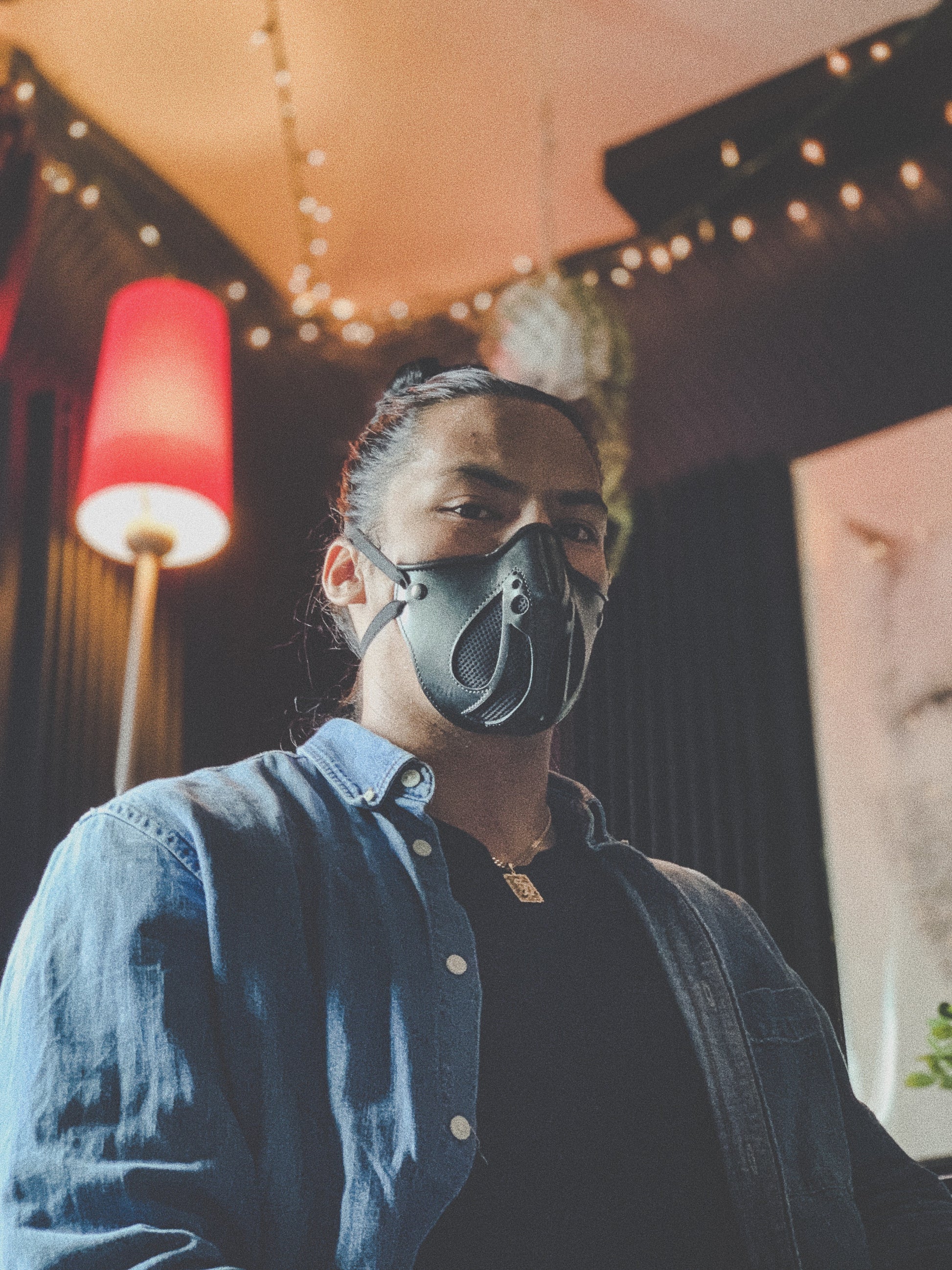 The Falcon is a bird of prey, sleek and stylish with tapered wings for speed. Lightweight and ease of breathability make it a stylish accessory. This is the larger size for medium to larger faces. The mask measures 5" from top of nose bridge to bottom of chin.