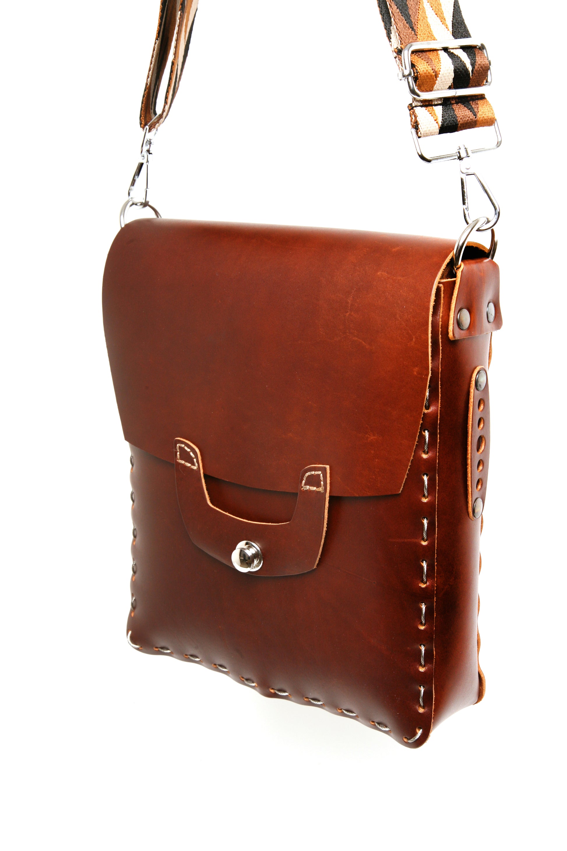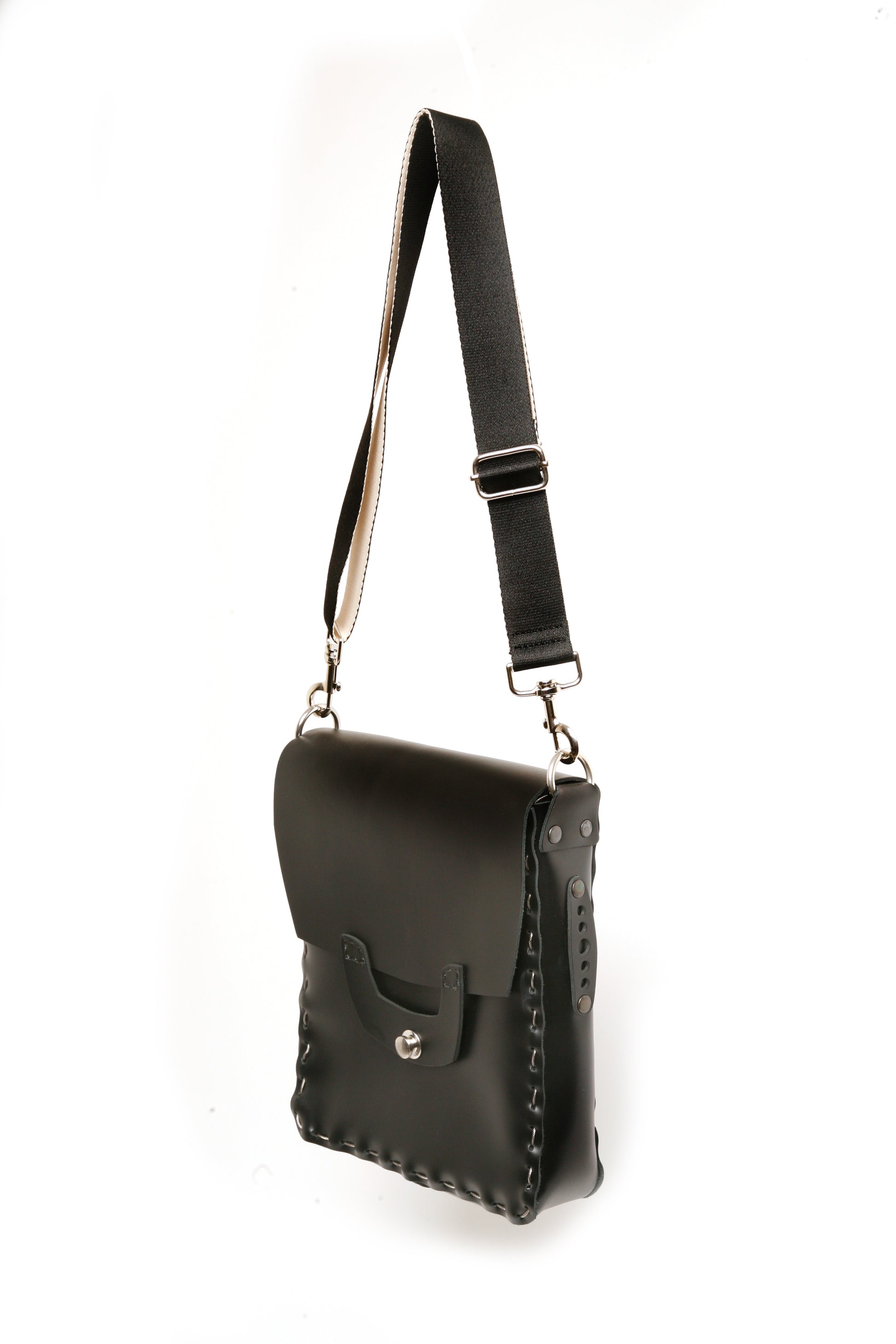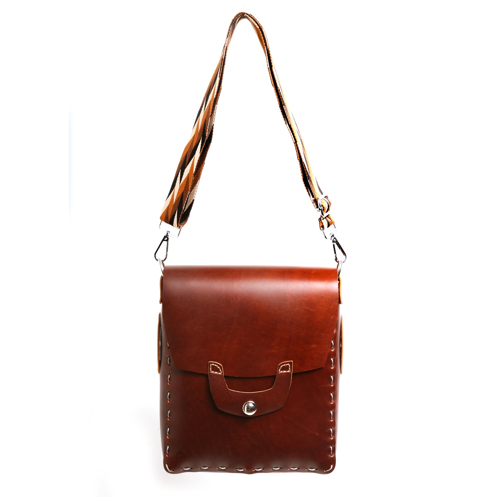 The Keburu satchel is handcrafted with premium top grain leather, stitched by hand using strong stainless steel cable. Drawing inspiration from JMB's roots in Toronto during the 1980s, this satchel features a cross-body design and a spacious external pocket on the back. The solid brass button ensures secure closure and effortless use, while the 35mm wide webbing cross body strap is easily adjustable. Each and every JMB piece is meticulously bench-made in limited quantities at the King Mountain atelier, nestled in the majestic Canadian shield.