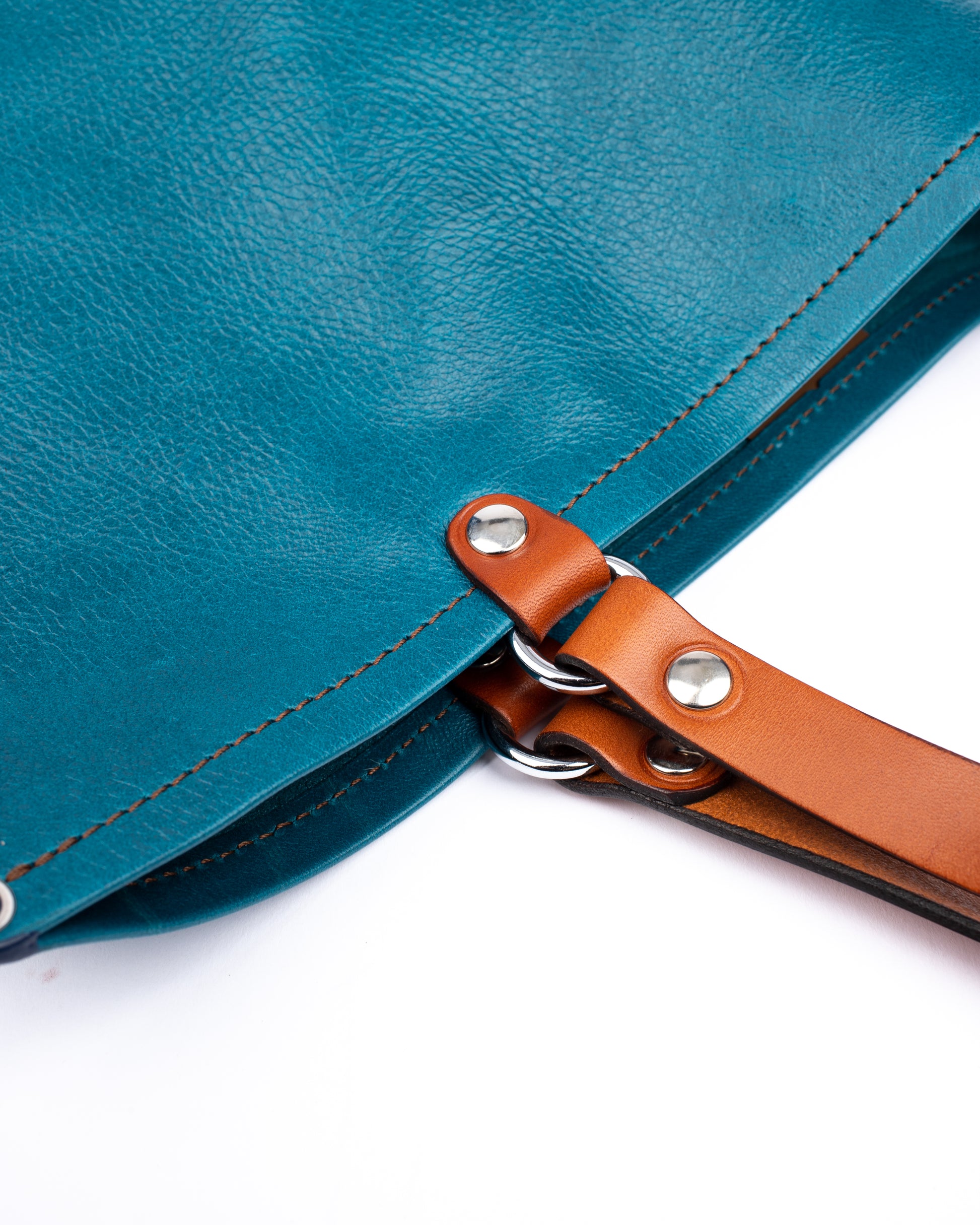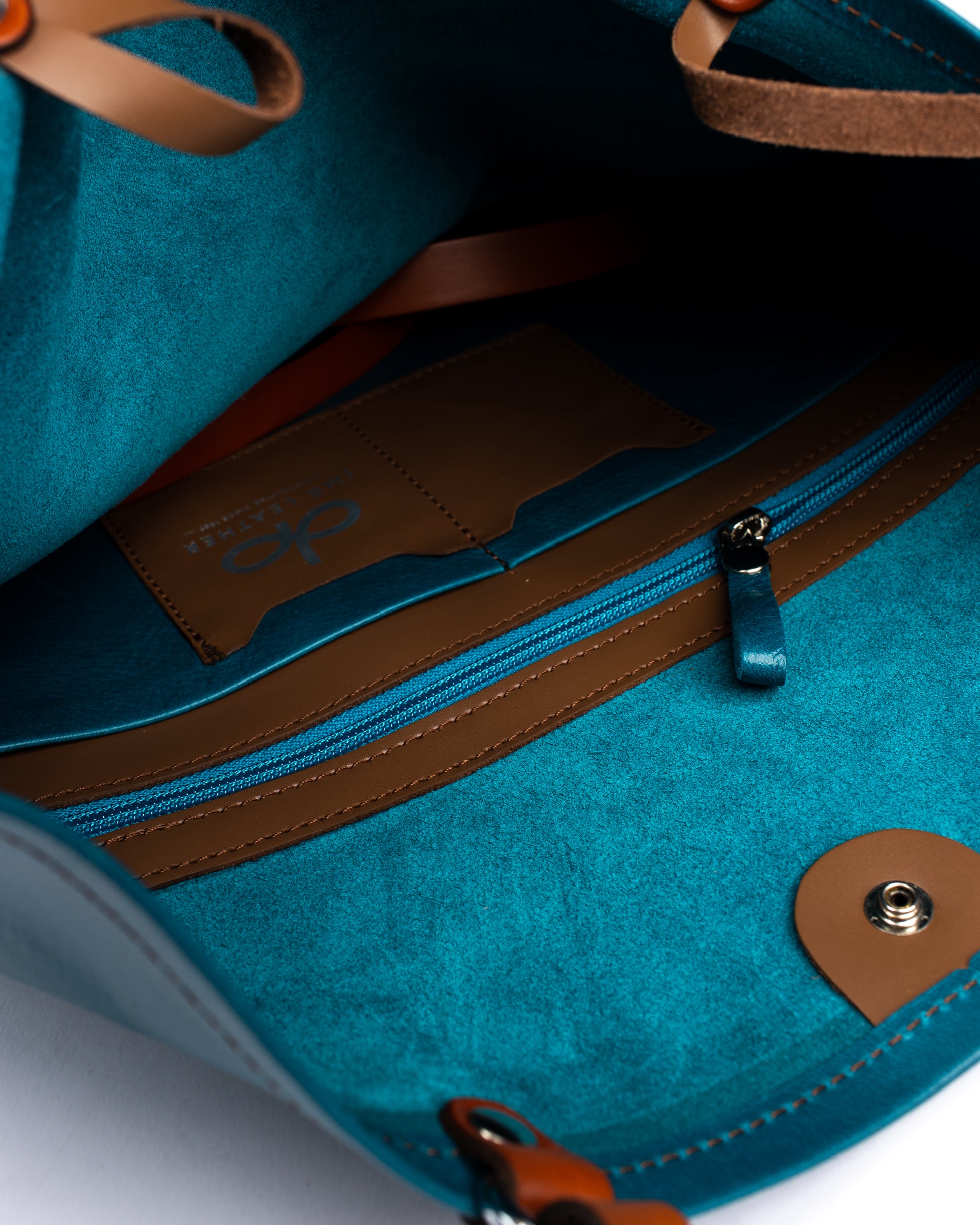 The KIKI is a chic modern tote. It's slim profile make it great for everyday use. There is one large zipper pocket on the interior and a smaller pocket with a cell phone sleeve inside. The cross body strap hangs across the body giving a folded corner look