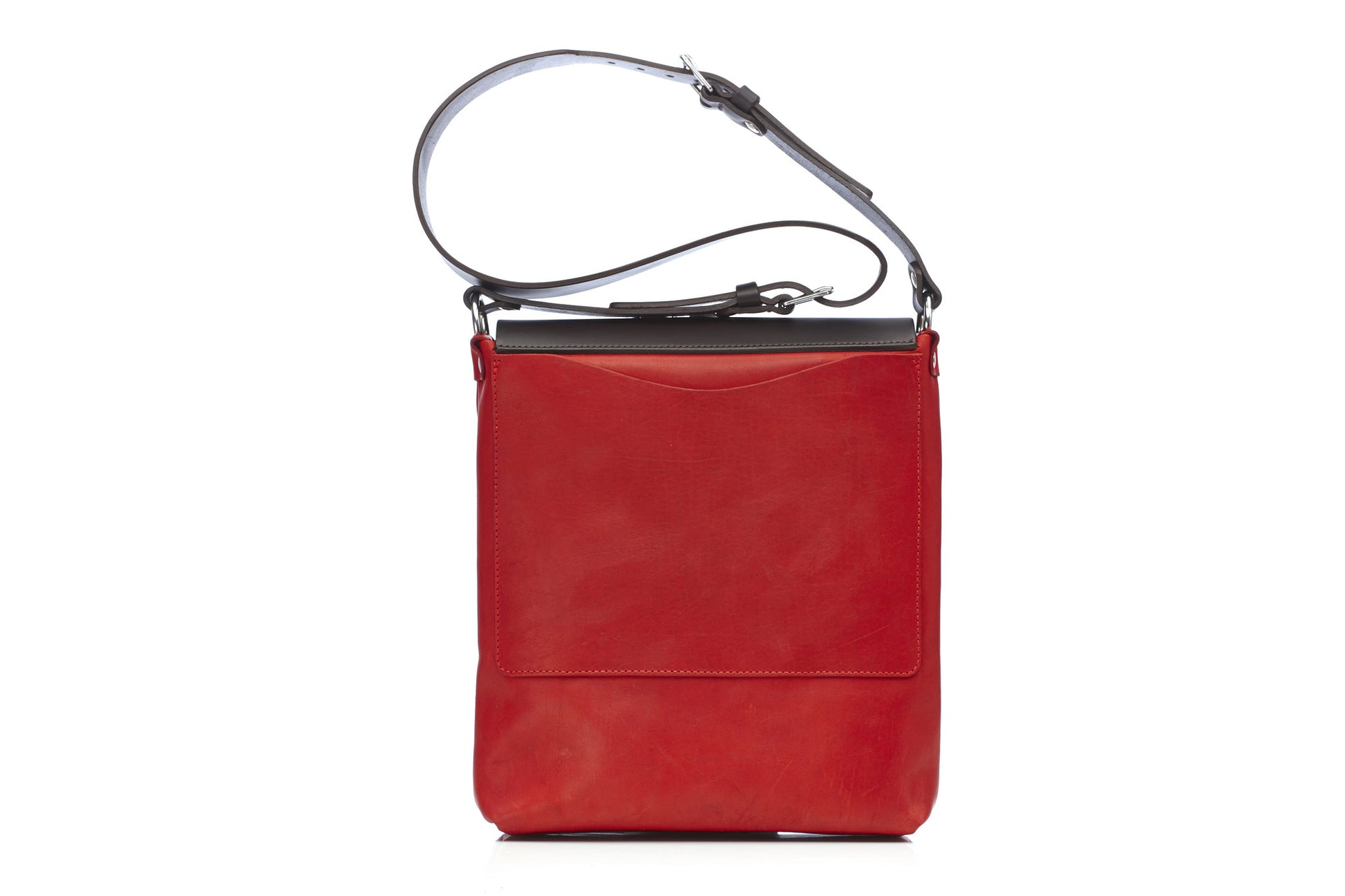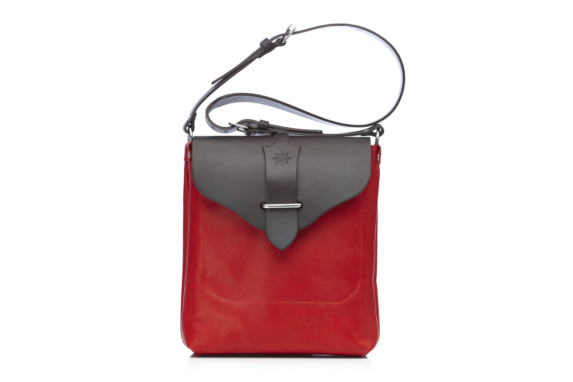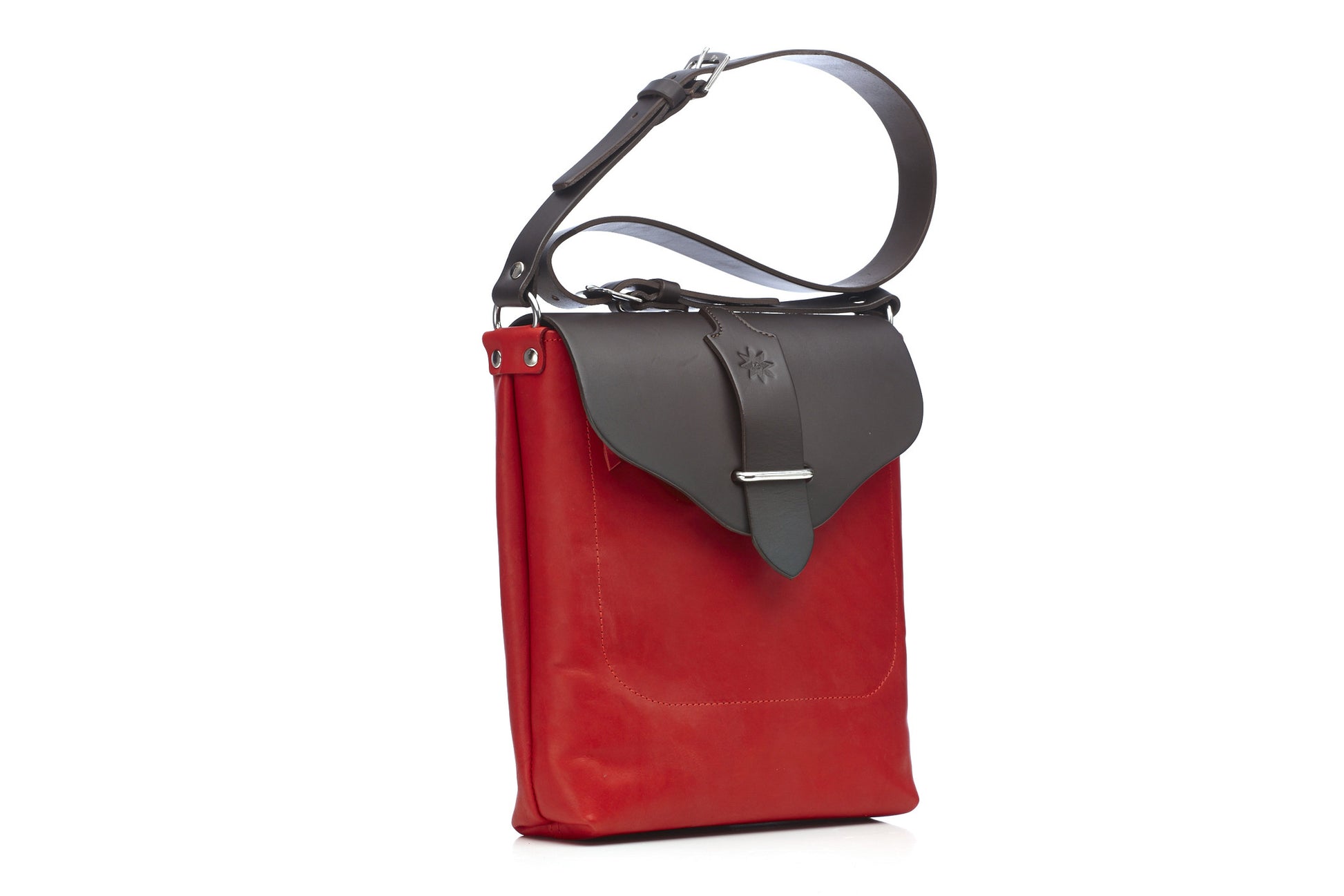 Fully constructed of heavy weight leather and riveted at all stress points. The flap is 10oz bridle leather. The Kuuru shoulder bag has several interior pockets and one large zippered external pocket on the front and a patch pocket on the back. It features an easy to use closure. All hardware is cast stainless steel harness grade. It has a reinforced bottom.