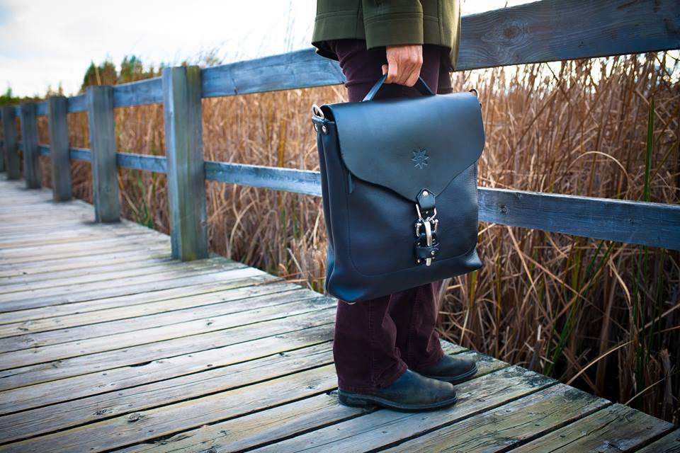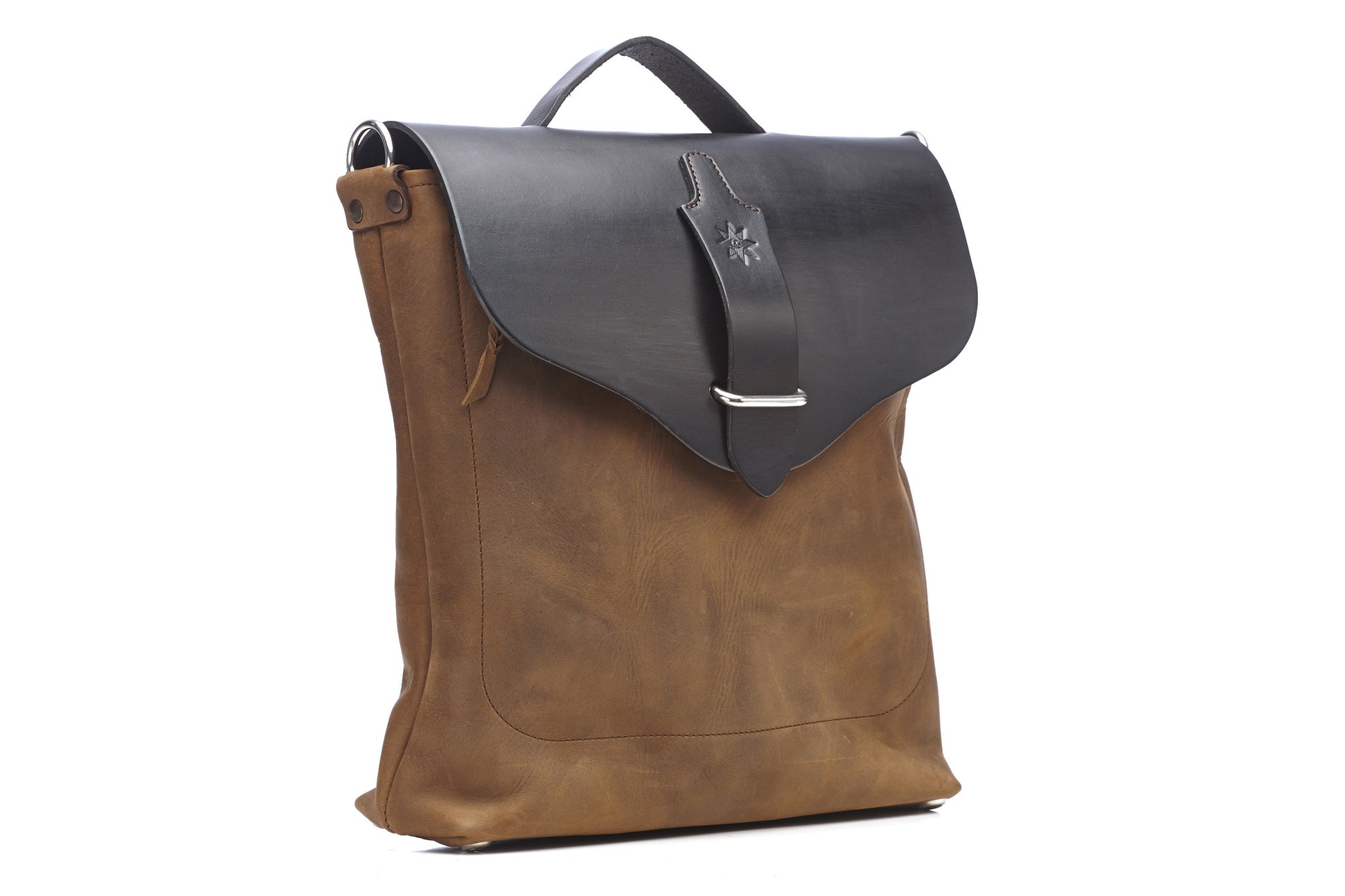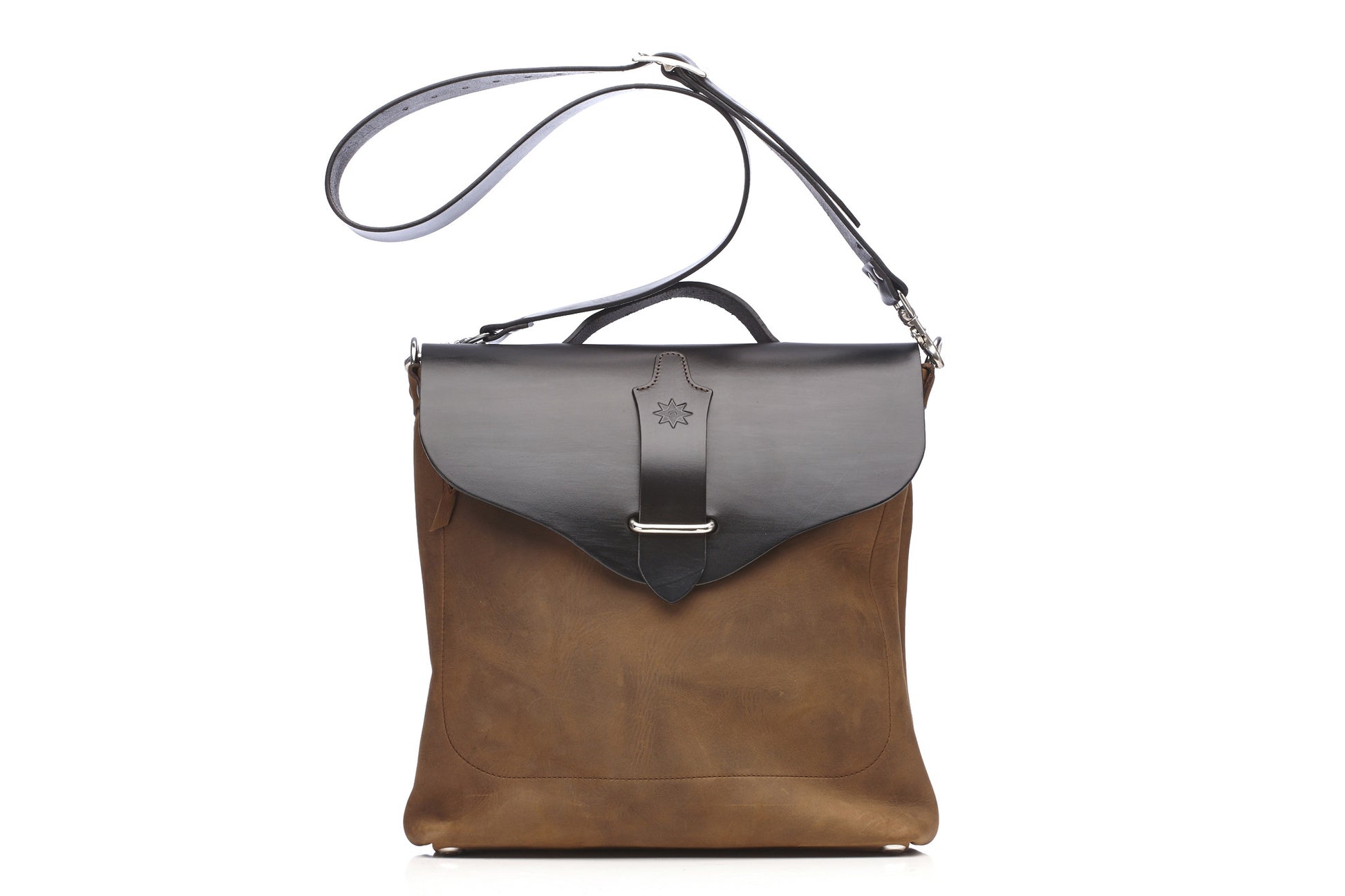 Fully constructed of heavy weight oil tanned leather and riveted at all stress points. The flap and strapping are 10oz bridle leather. The Kuuru shoulder bag has several interior pockets and one large zippered external pocket on the front. It features an easy to use closure. The shoulder strap is removable. All hardware is cast stainless steel harness grade. It has a reinforced bottom and metal feet. The shoulder strap is 1.75"wide ,adjustable and removable. The leather is crazy horse brown taupe. It can be waxed for a darker richer finish. Just ask when purchasing and we will include the cream.