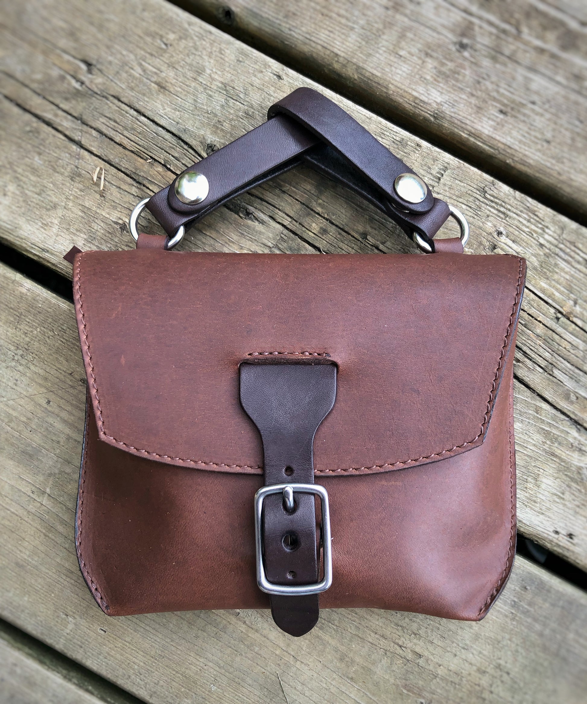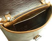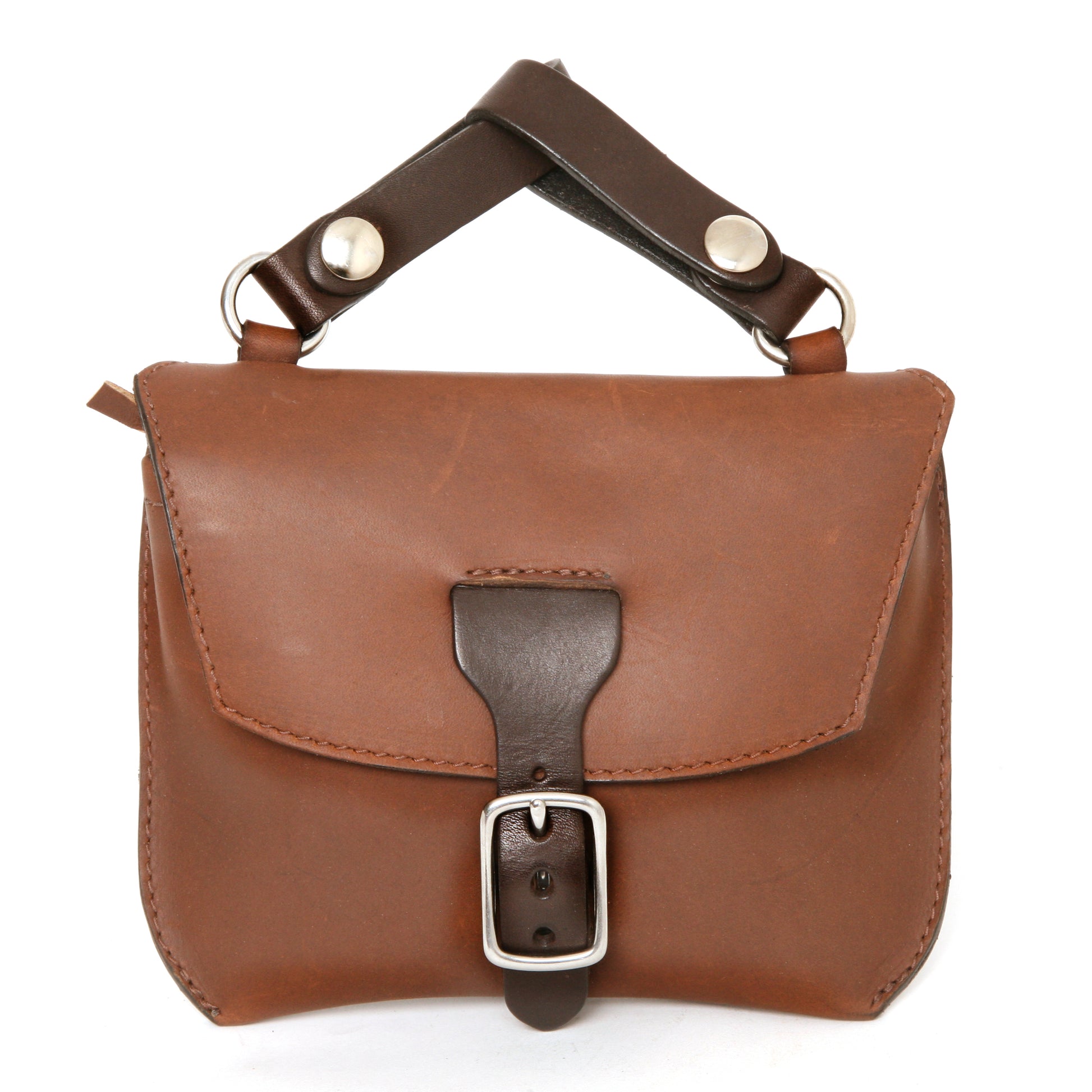 The Kuuru side bag attaches to your belt with two leather loops that close with solid brass, nickel-plated snaps. There is a zippered pocket with a second sleeve inside it for storing cards. It can carry a wallet, cell phone and keys with room to spare. It will fit a couple of CD's as I found out as well as a pen. The snaps are military spec and are very secure so snapping it on to another bag or just your handle bars of your bike make it very versatile.