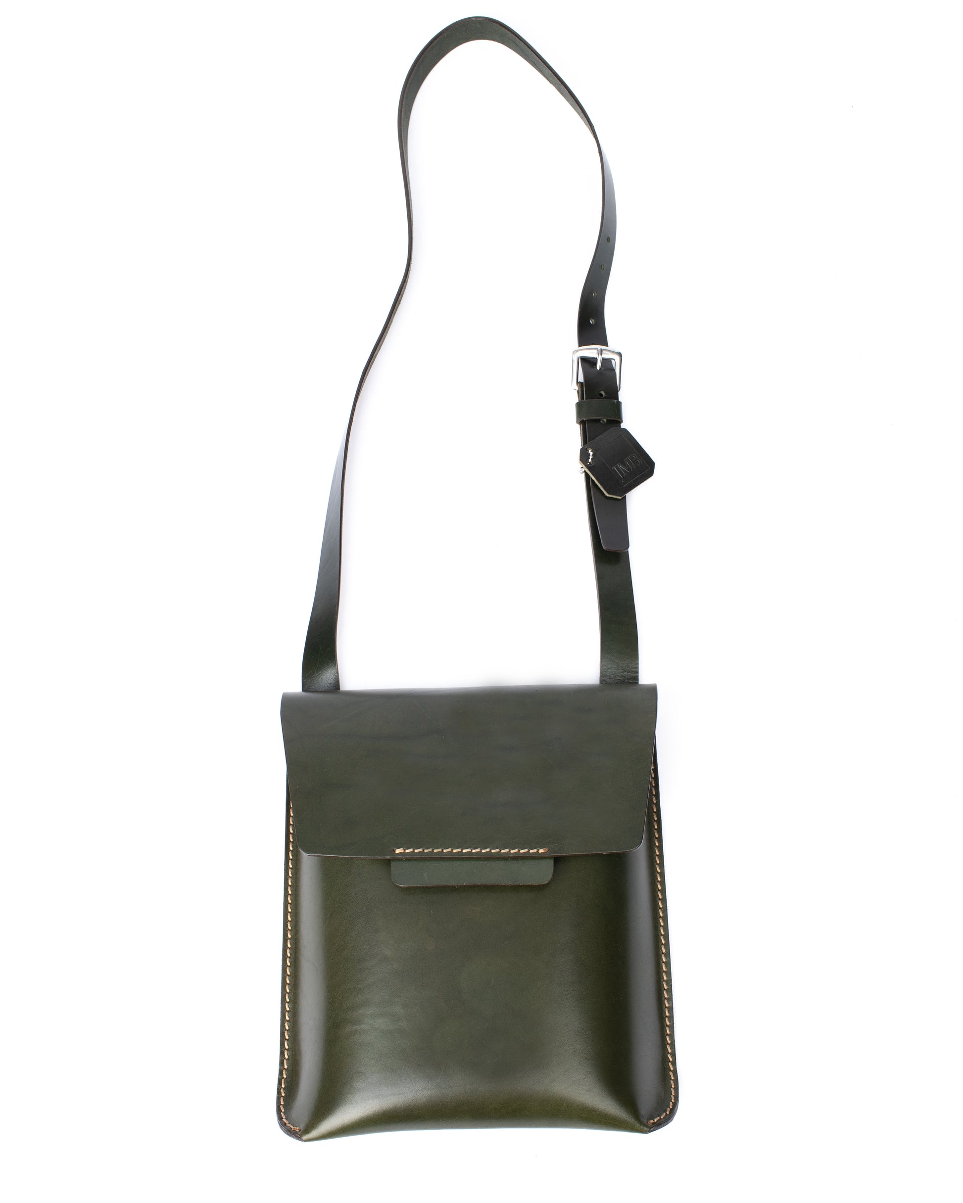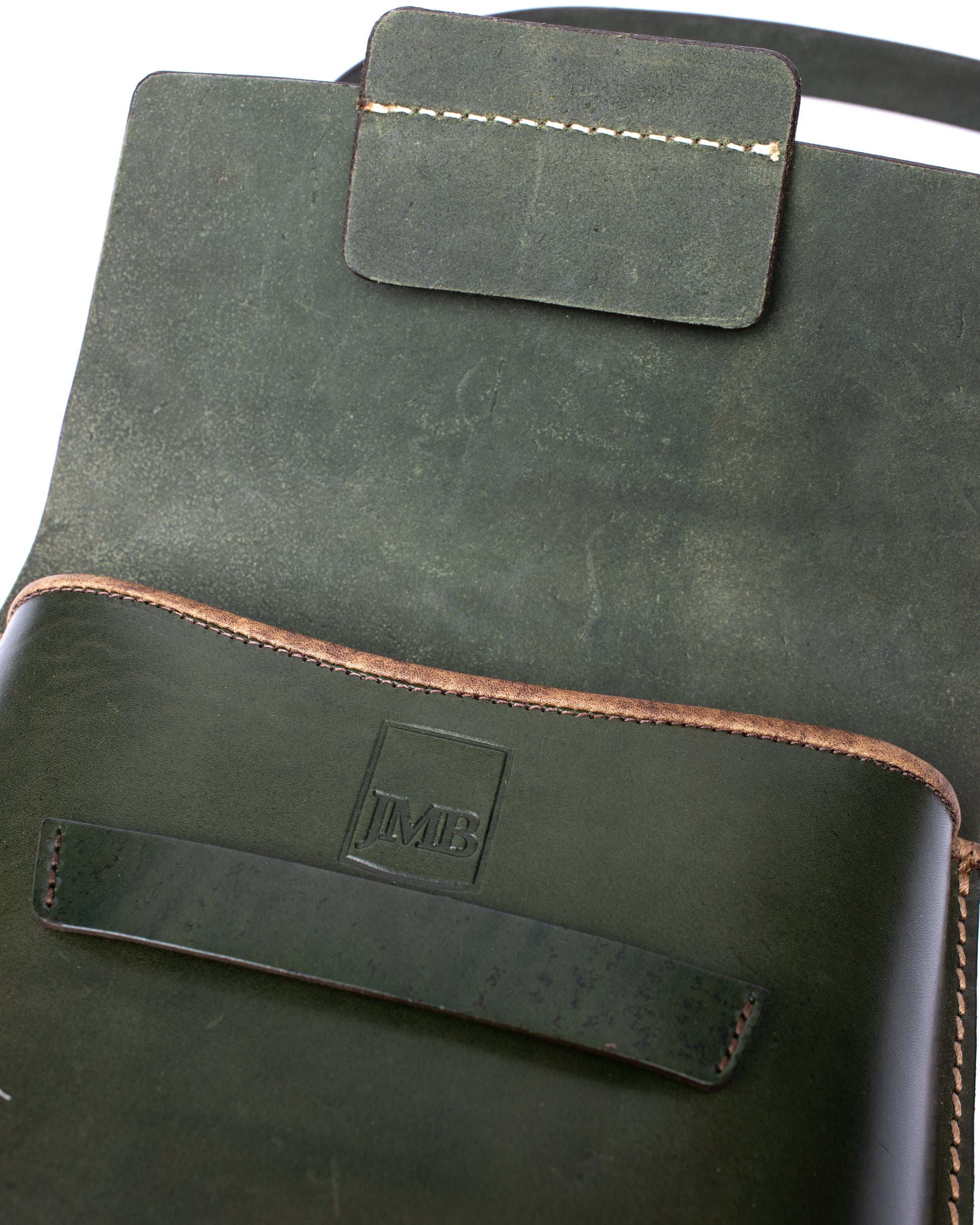 The LIEKA satchel features one piece construction with a patch pocket on the back for quick phone access.