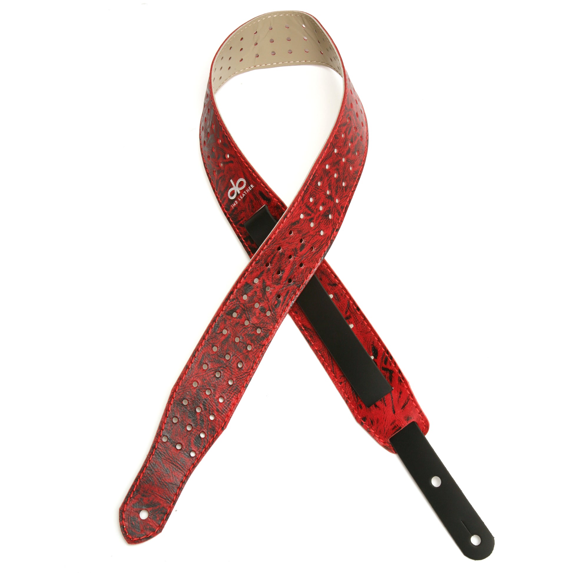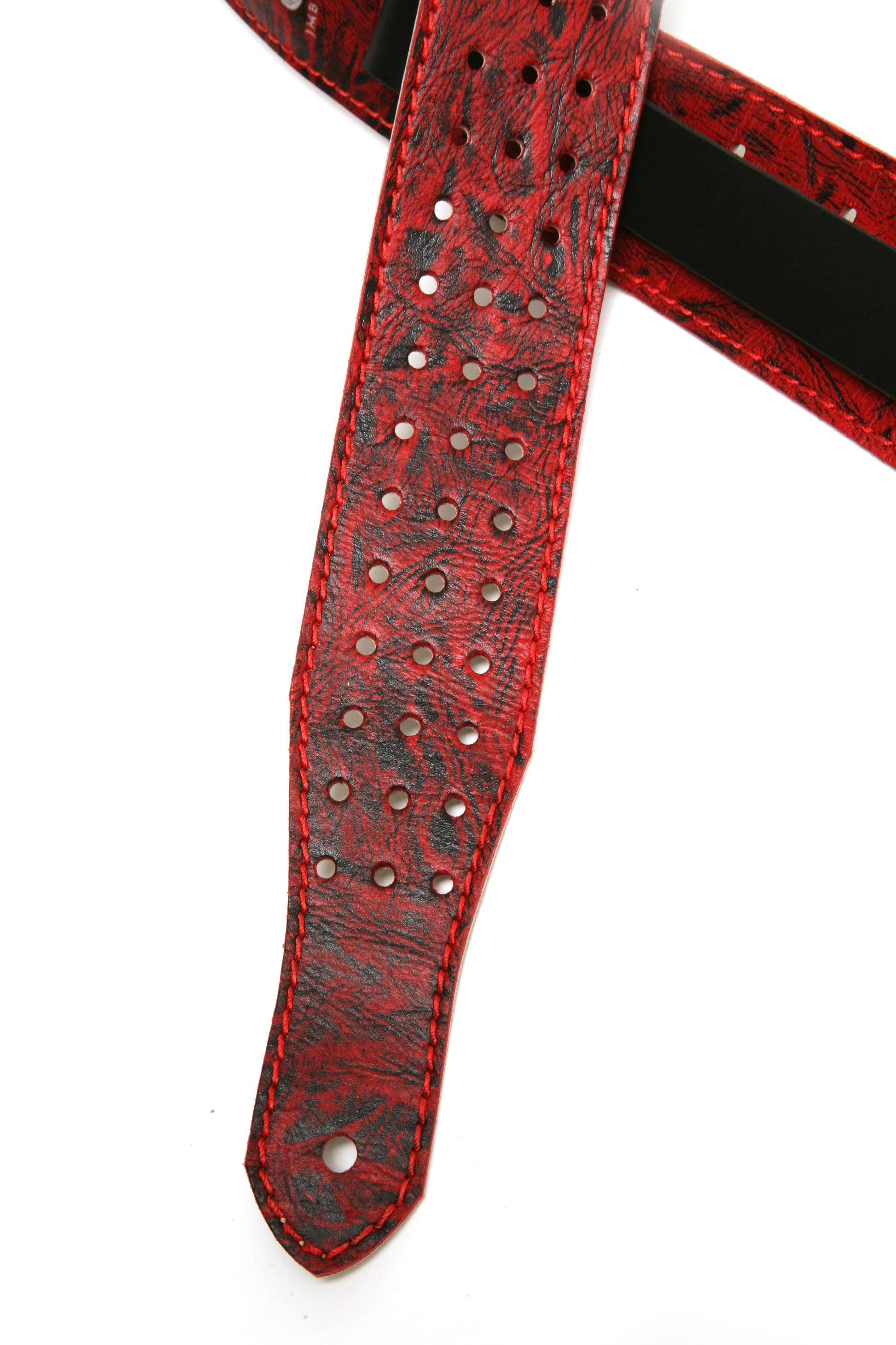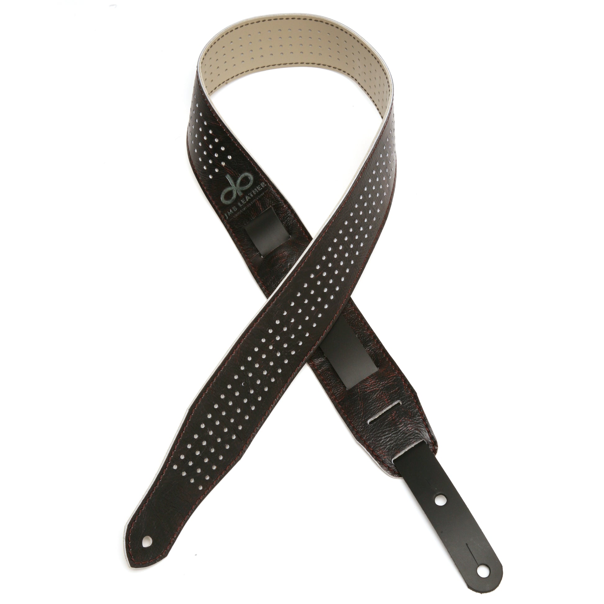 This premium MADDOG guitar strap is crafted using top grain leather that has been antiqued making it comfortable and breathable with burnished edges. For added visual appeal, it is also fully perforated. Its vintage finish will improve with age and use, and is adjustable from 44"-58", 2.5" wide. For greater length, customization is available. Just add in the notes field at check out.