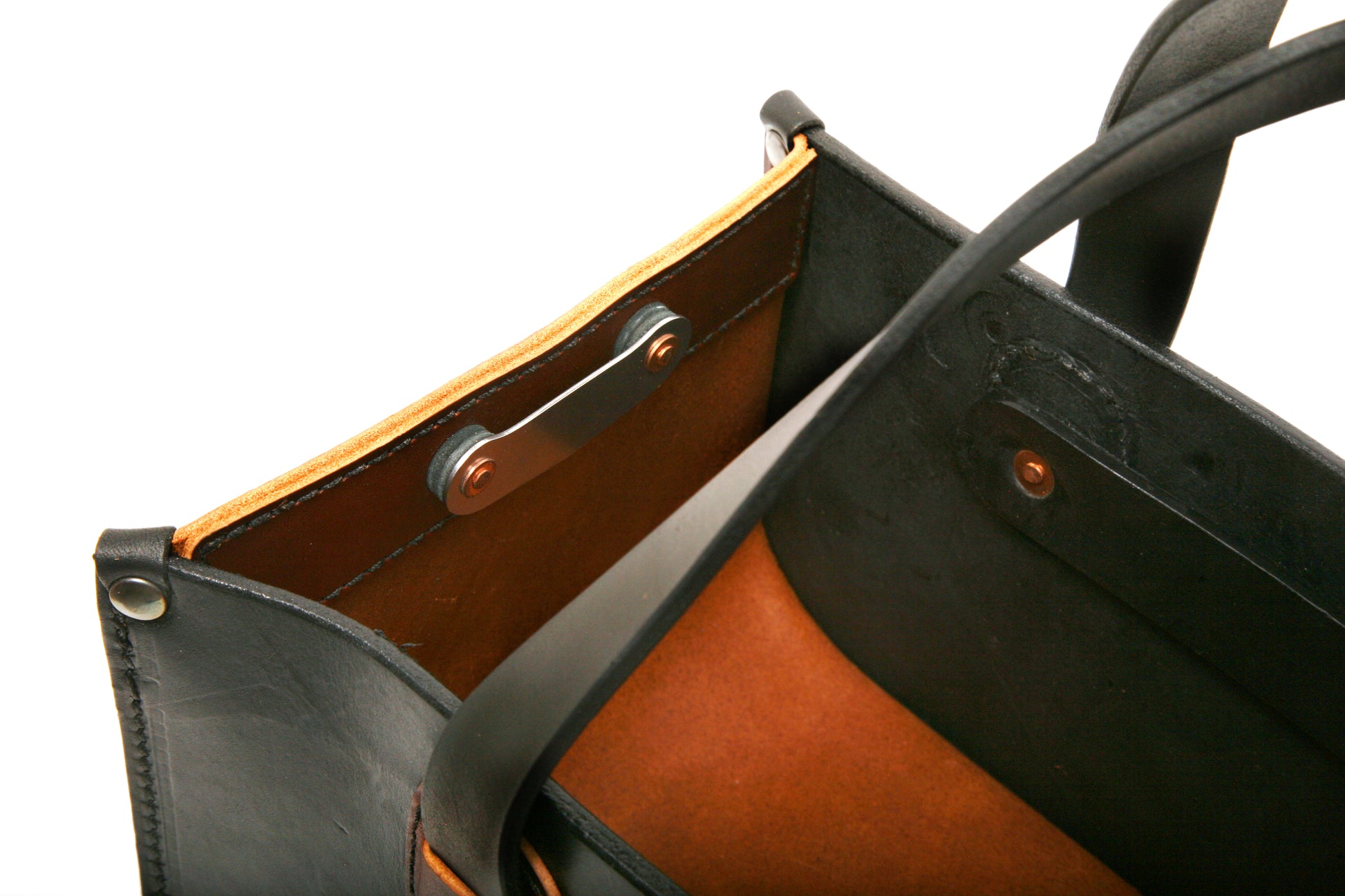 The Otsu tool tote is a quality piece crafted from thick vegetable-tanned leather, with added features like side tuck panels, a stainless-steel clip holder, and copper rivets securing the handles. Each Otsu is bench made in the foothills of the Gatineau park at King Mountain studio. Ideal for artisans, DIYers, and gardeners, the Otsu can contain all the necessary tools in an enduring and stylish package. Additionally, the tote comes with a leather mat to cover the contents while also providing a workspace for organizing tools without risking damage or loss. Currently, two sizes of this heirloom-quality tote are available: large