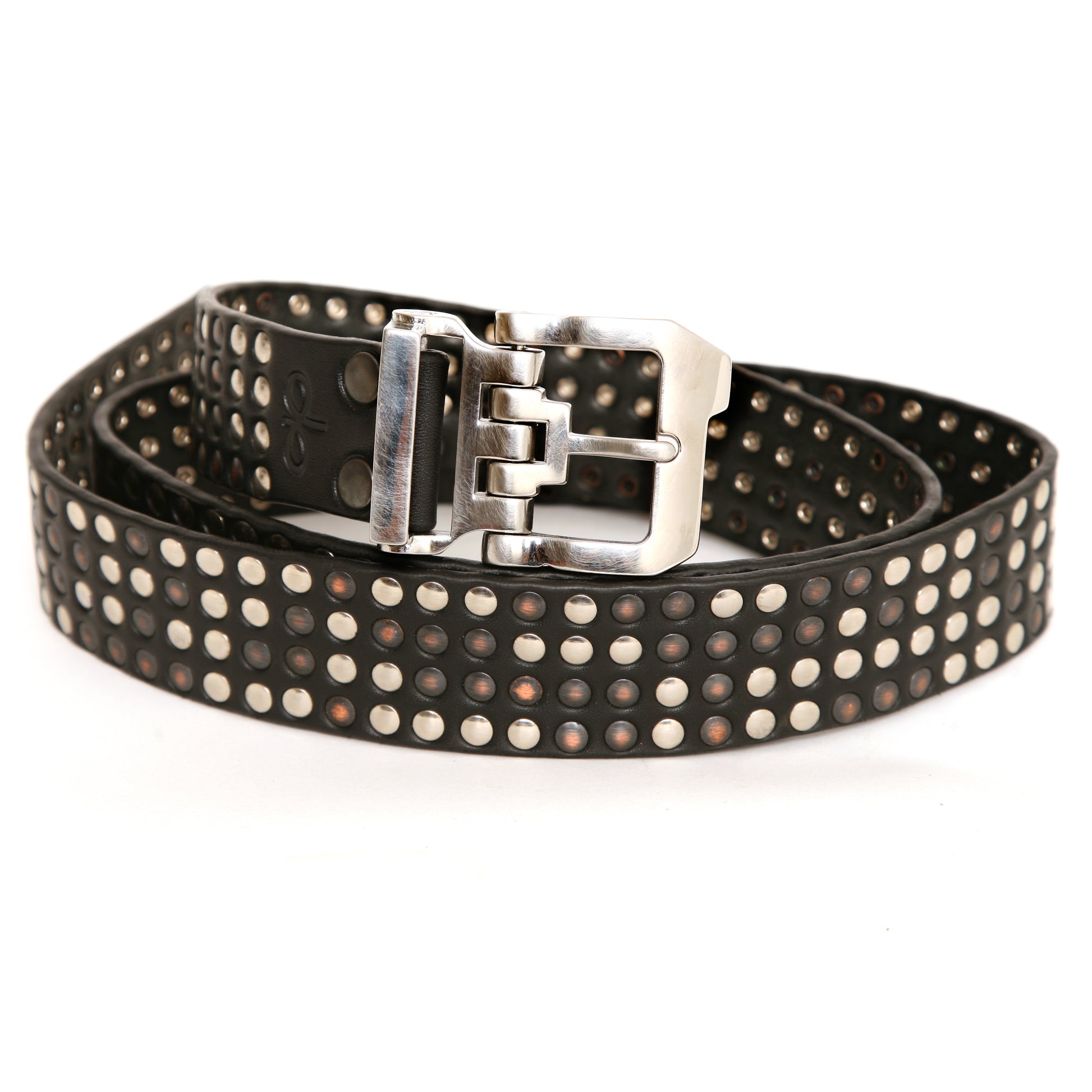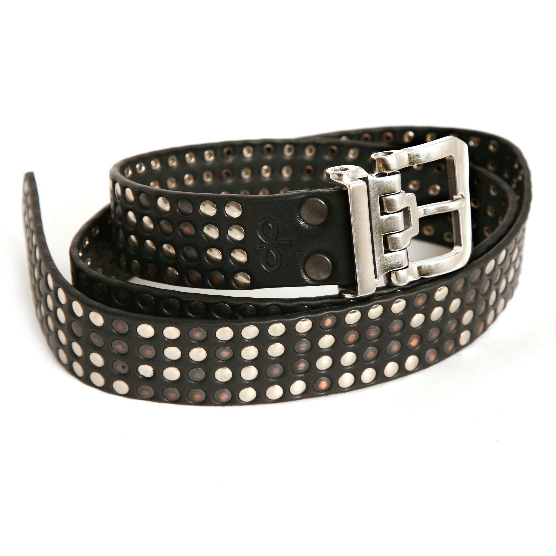 The OTTO Full Stud is a thoughtfully designed, solid stainless-steel buckle with a hinged link for added flexibility. Each piece features a unique pattern of silver and gunmetal studs, hand-finished edges, and is secured onto a 12oz English bridle leather belt. It is held to the highest standard through a six-step process, ensuring a product that will only improve over time. The buckle measures 1.5" in width. As with all our belts, your size should be the same as your comfortable jean size, allowing for a few holes adjustment either way.
