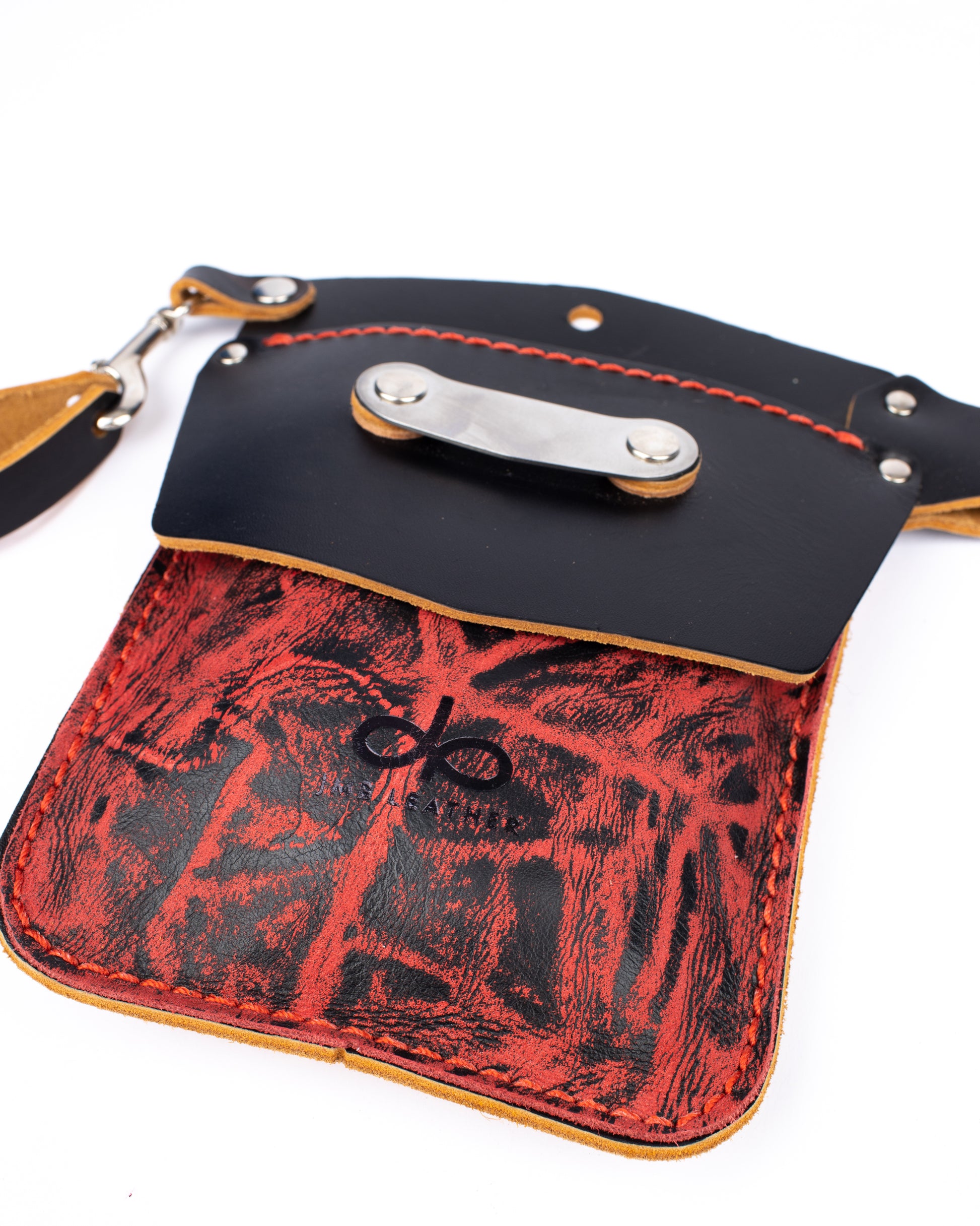 This pocket liner will hold a few essential tools as well as a tape measure and a longer tool in the side loop. It is made with Full grain leather and stitched with very heavy thread and riveted at key stress points making it a lifetime tool pouch.
