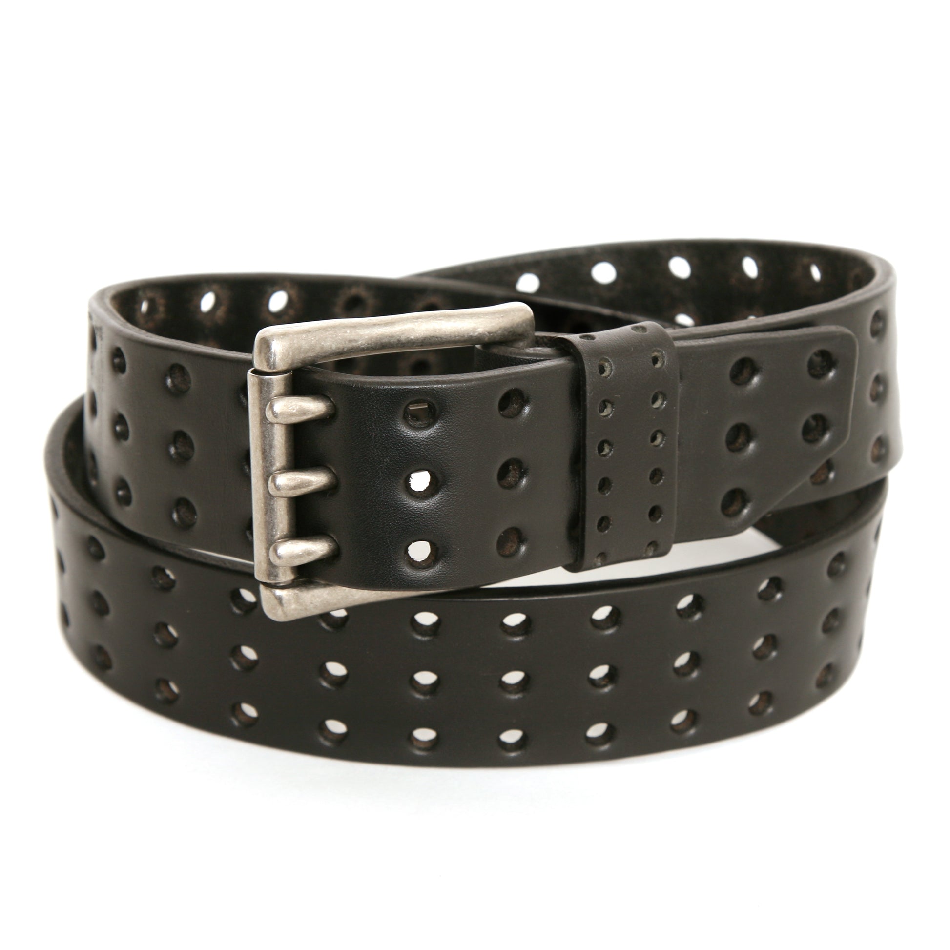 I remember making this belt for the first time back in the 80's. The buckle is cast out of solid stainless steel with a raw finish. All the holes are spaced at 3/4" instead of the 1" standard and each and every one is dyed and sealed. This little detail gives you a great custom fit and unique look. How many times have you put on your favorite belt and find that you are in-between holes and have to settle for too loose or tight? The edges are hand finished with our six-step process ensuring a product that only gets better with age. The Roller measures 1.75" in width. As with all our belts, your size should be the same as your comfortable jean size, allowing for a few holes' adjustment either way.