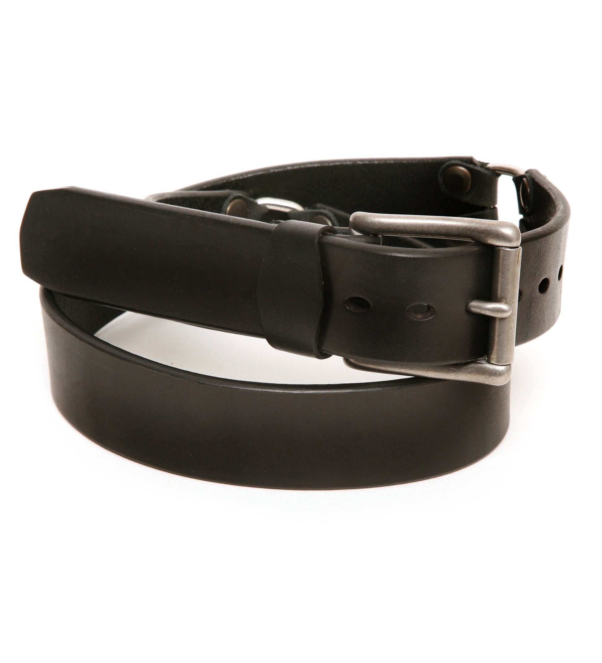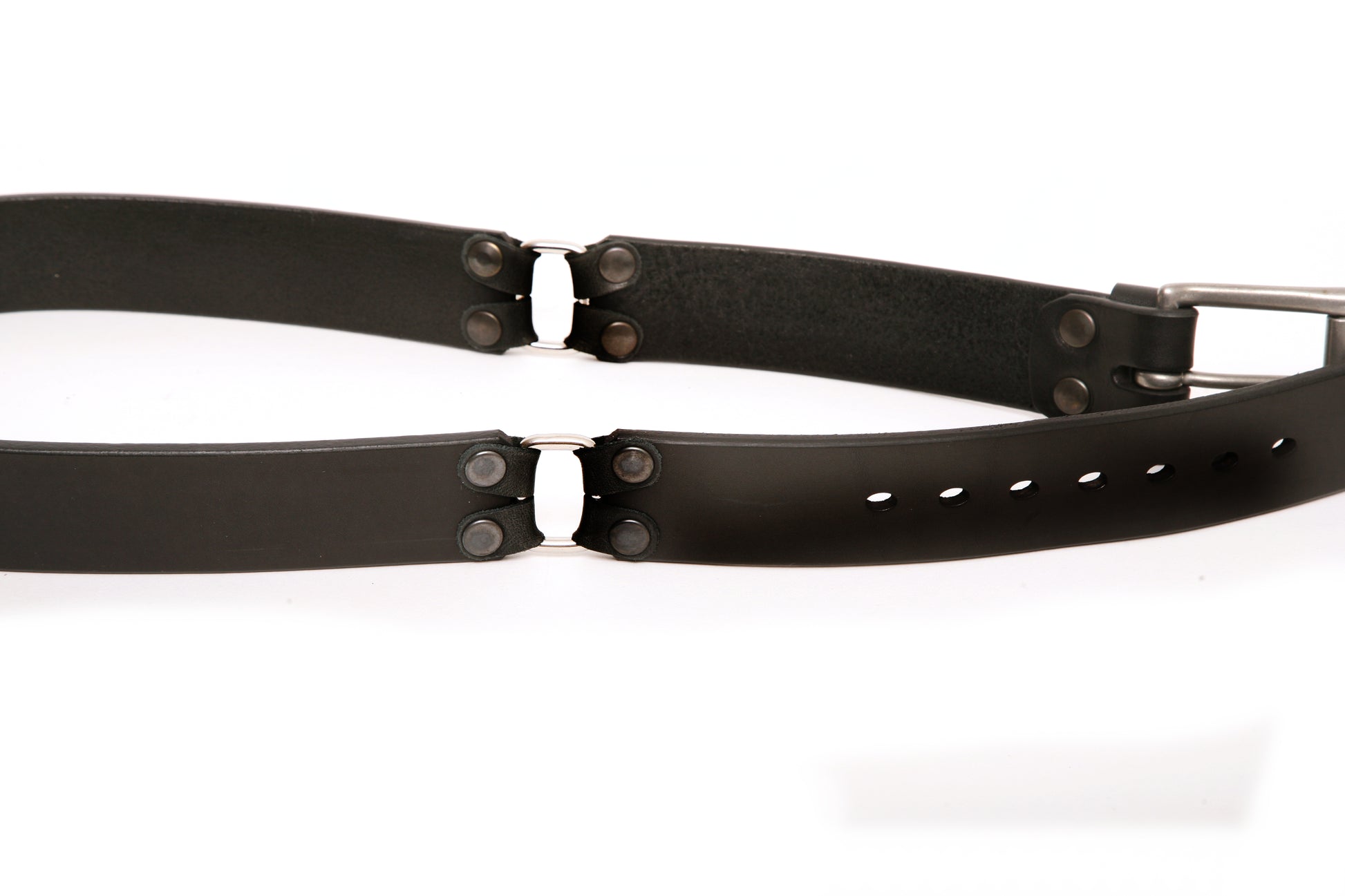 The Tug Loop Roller is 1.5" wide and has stainless steel tug loops detailing the hips. The leather is thick 12-13oz vegetable tanned bridle leather that is hot stuffed and features our 6-step finished edge. The buckle is raw cast stainless steel, and the rivets are gunmetal finished. The loops sit comfortably on the hips adding a little style and spot to clip a carabiner.