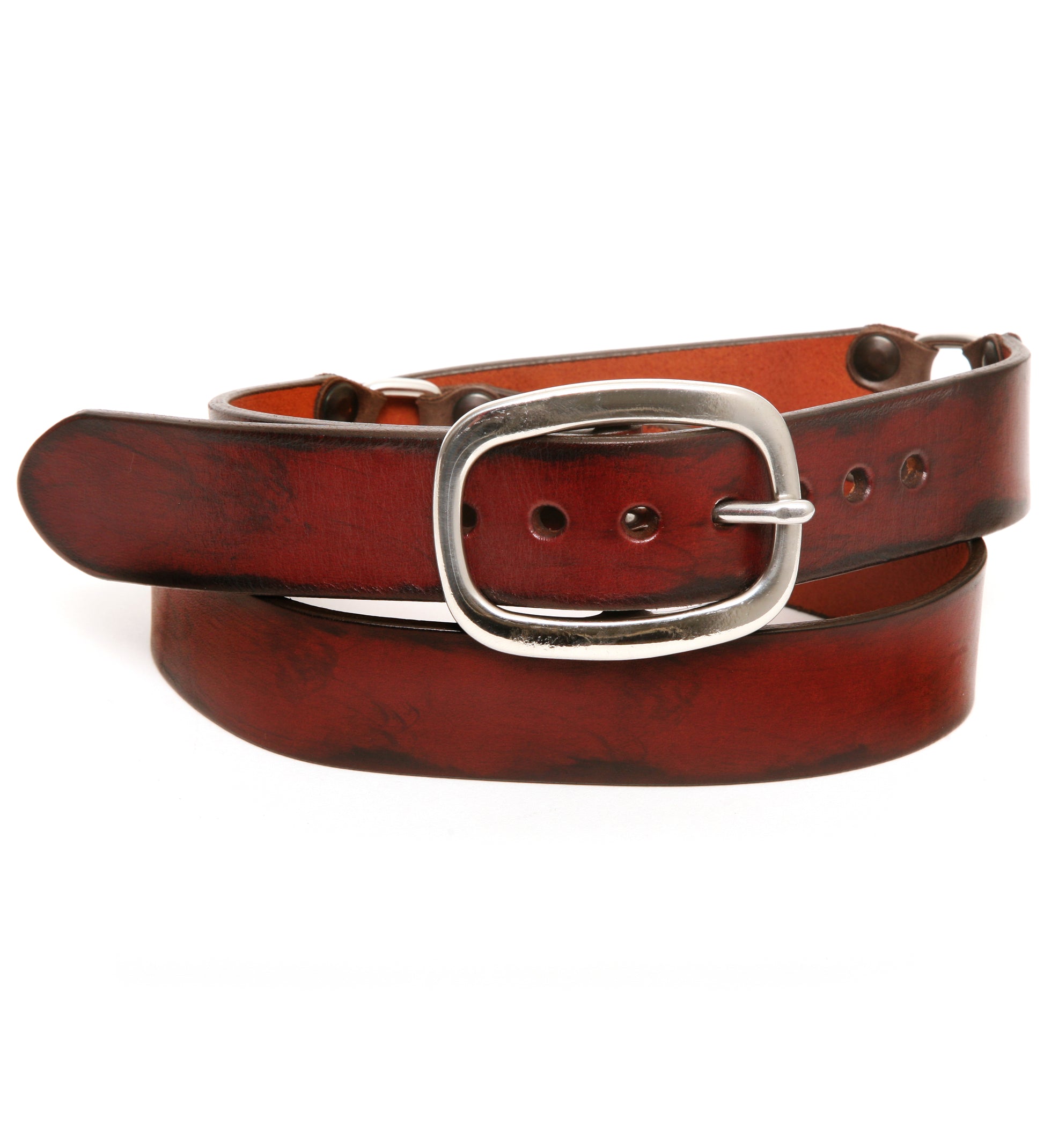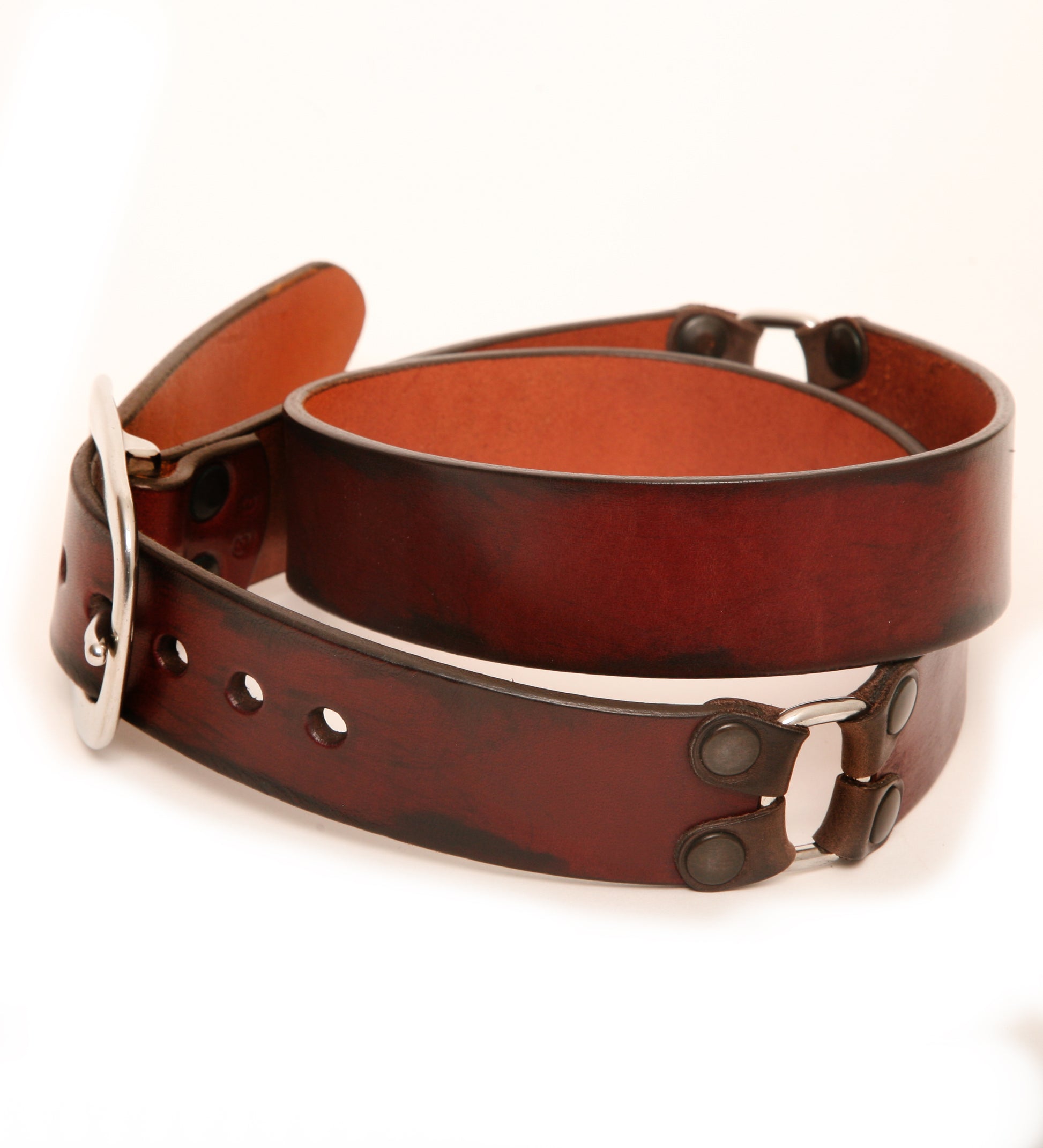 Crafted from durable 12oz vegetable tanned bridle leather, this three-piece belt features gunmetal hardware and stainless steel loops for long-lasting wear. The edges are expertly burnished and top coated using a 6 step hand finishing process, ensuring a professional and timeless look. The classic jean buckle is made of cast stainless steel.