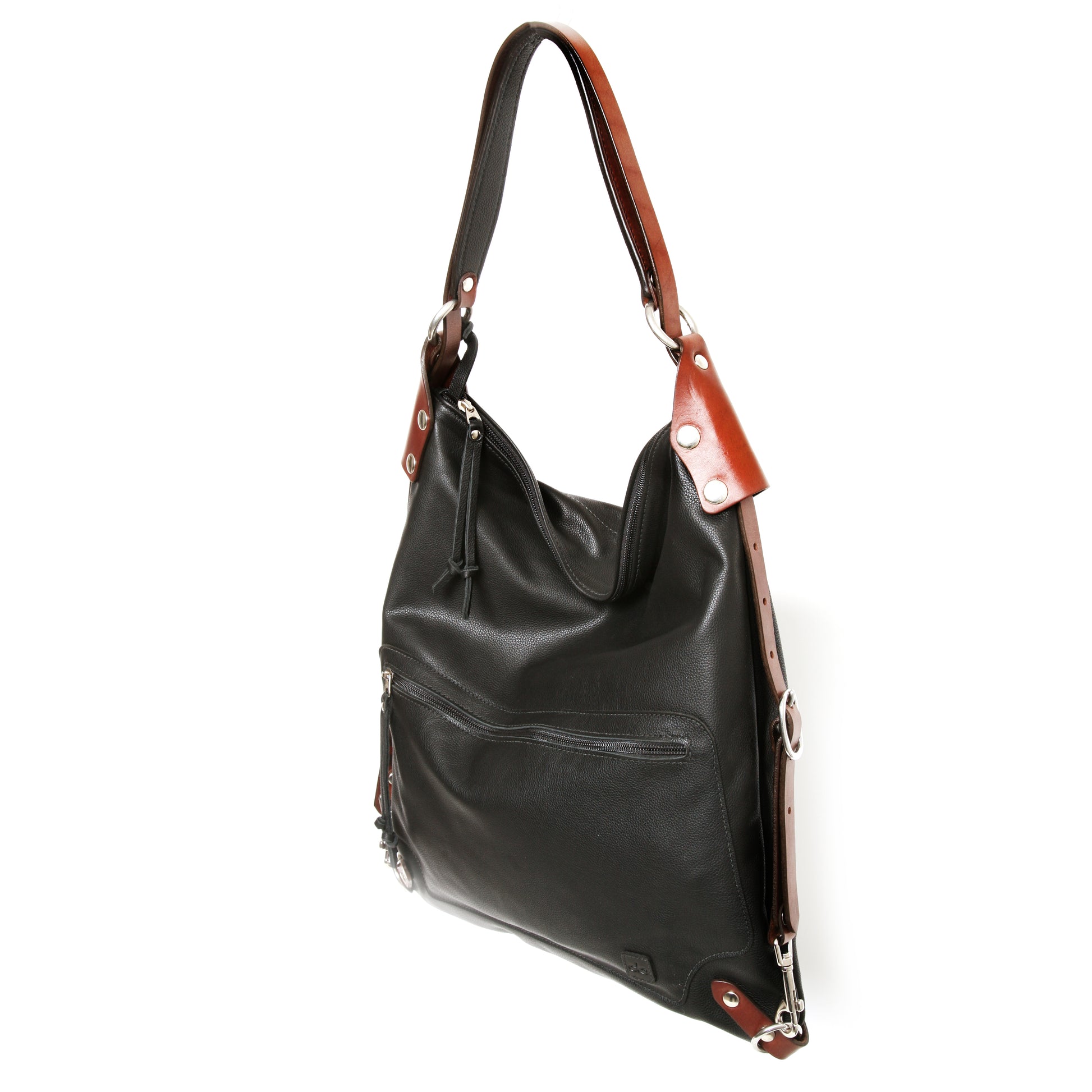 The Villa is a chic backpack and shoulder bag designed all-in-one. It carries a laptop and all your daily necessities with plenty of room to spare. There is one large zipper pocket for quick access on the front of the bag and a large zipper pocket with patch pockets on the upper inside back panel. Securely attached to one of the strap-rings is a long discreet key lanyard that is easily stowed and accessed. The Villa is made of Italian full grain leather and strapped up with English bridle leather. The hardware is solid, cast equestrian brass or stainless steel. All the edges are carefully hand finished making this a timeless and functional piece that will serve and age gracefully for many years to come.