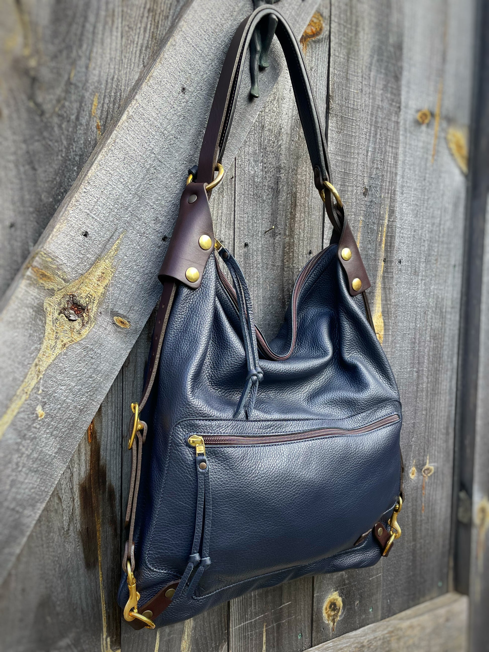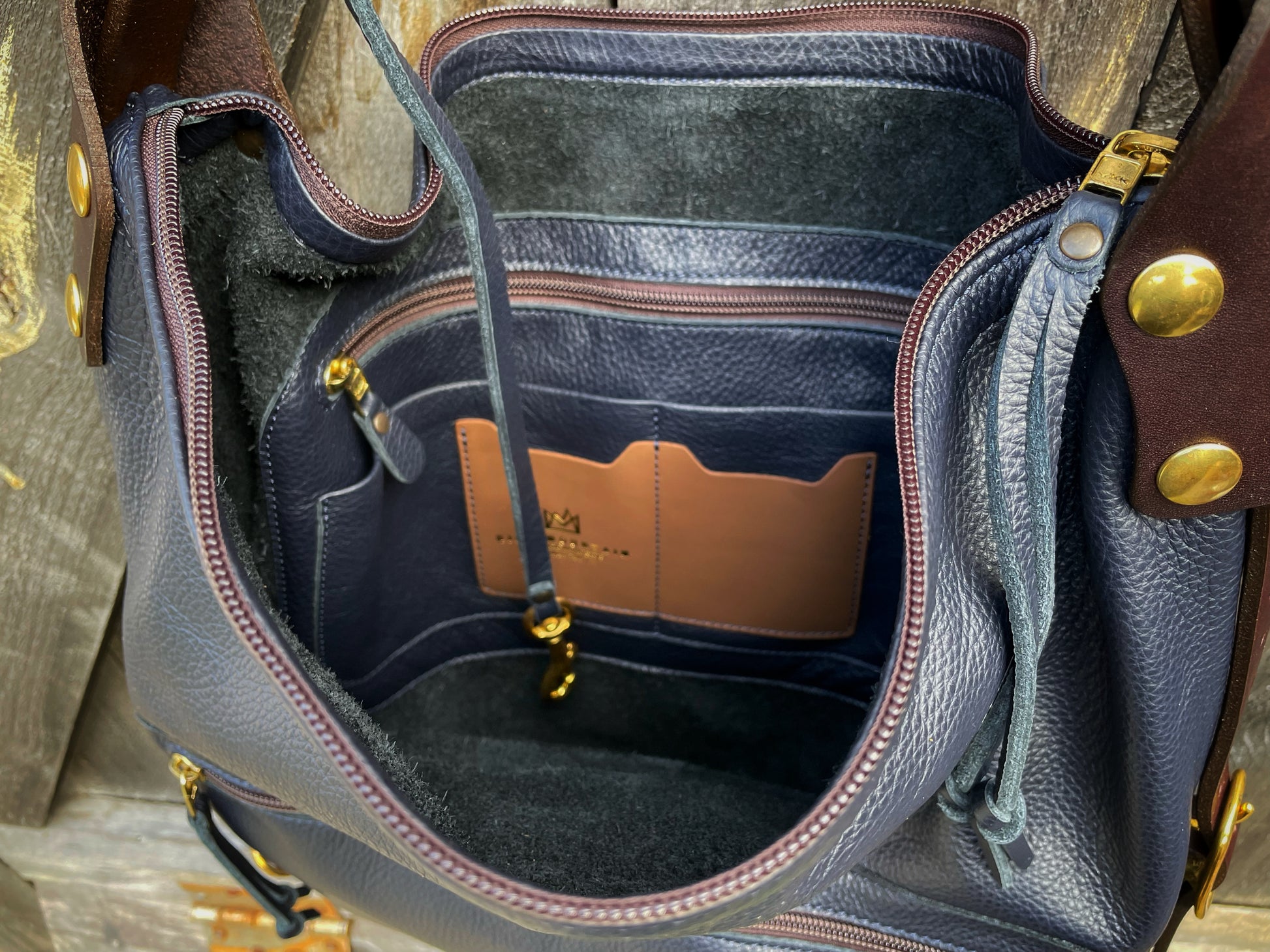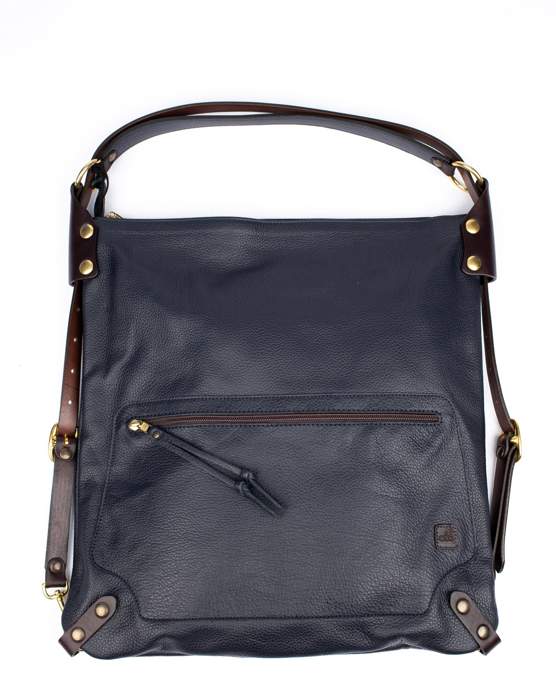 The Villa is a chic backpack and shoulder bag designed all-in-one. It carries a laptop and all your daily necessities with plenty of room to spare. There is one large zipper pocket for quick access on the front of the bag and a large zipper pocket with patch pockets on the upper inside back panel. Securely attached to one of the strap-rings is a long discreet key lanyard that is easily stowed and accessed. The Villa is made of Italian full grain leather and strapped up with English bridle leather. The hardware is solid, cast equestrian brass. All the edges are carefully hand finished making this a timeless and functional piece that will serve and age gracefully for many years to come.