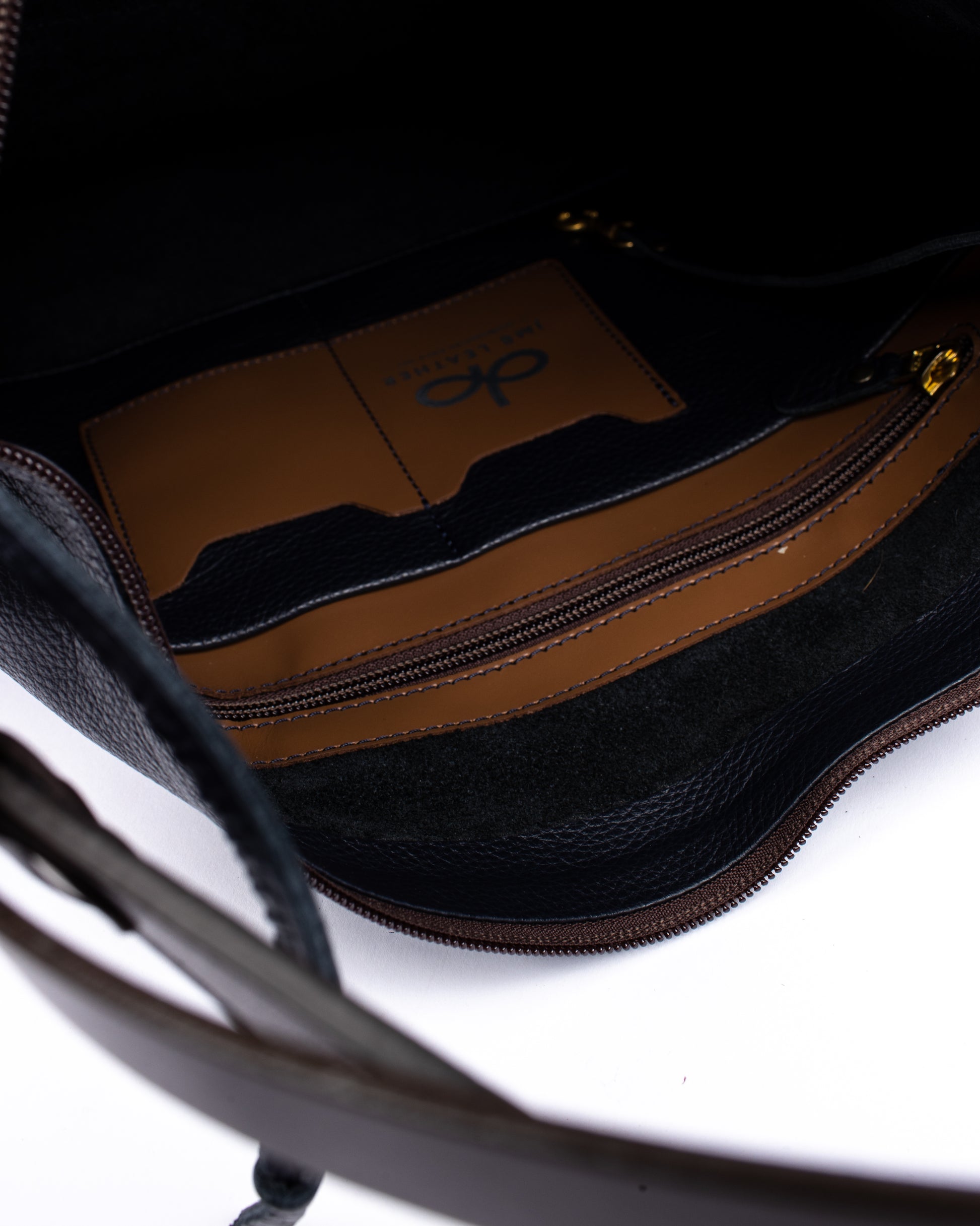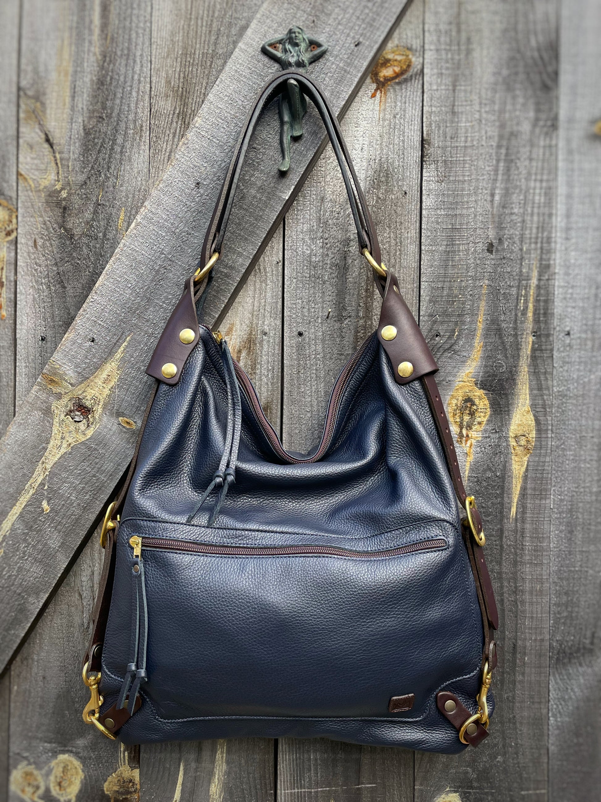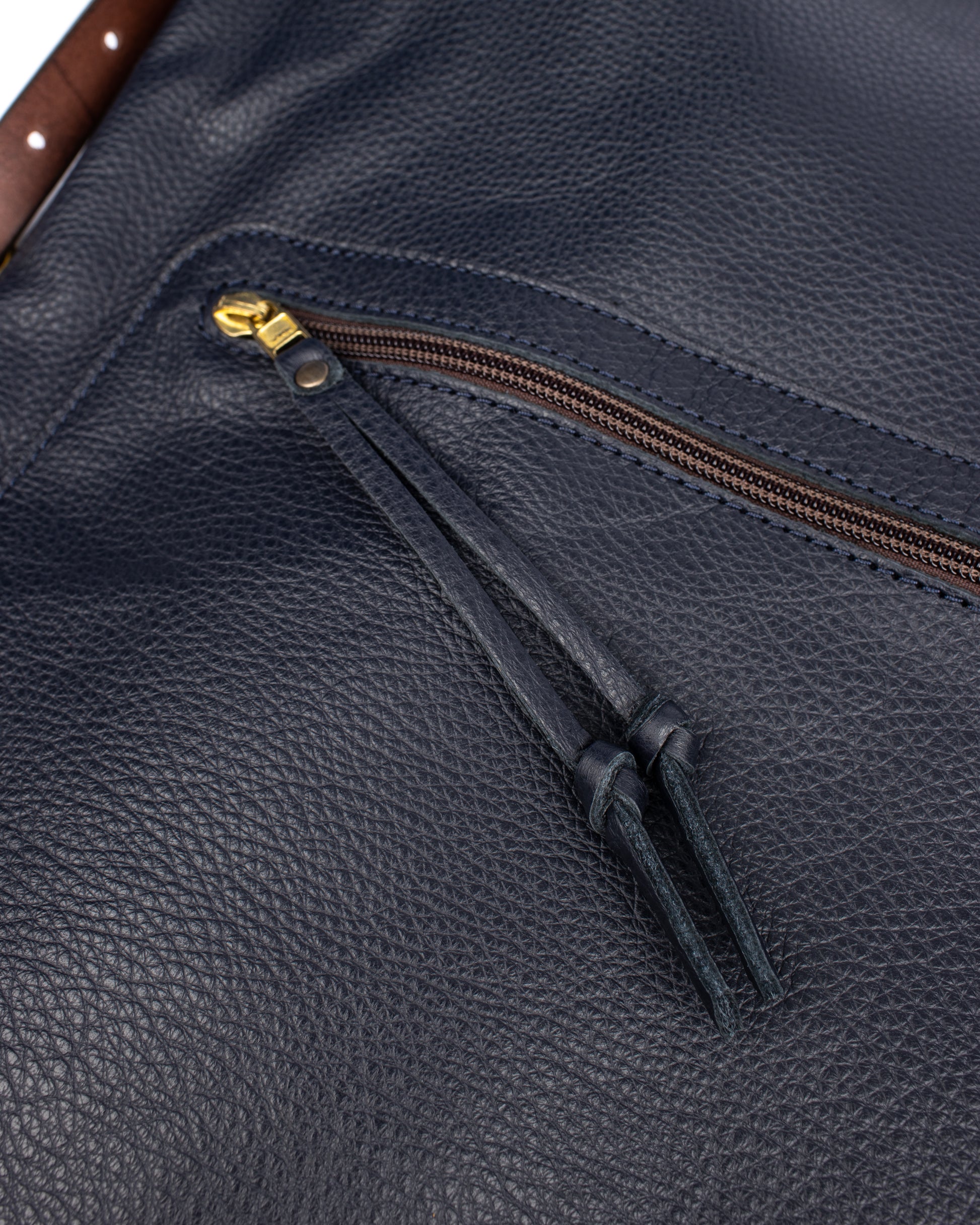The Villa is a chic backpack and shoulder bag designed all-in-one. It carries a laptop and all your daily necessities with plenty of room to spare. There is one large zipper pocket for quick access on the front of the bag and a large zipper pocket with patch pockets on the upper inside back panel. Securely attached to one of the strap-rings is a long discreet key lanyard that is easily stowed and accessed. The Villa is made of Italian full grain leather and strapped up with English bridle leather. The hardware is solid, cast equestrian brass. All the edges are carefully hand finished making this a timeless and functional piece that will serve and age gracefully for many years to come.