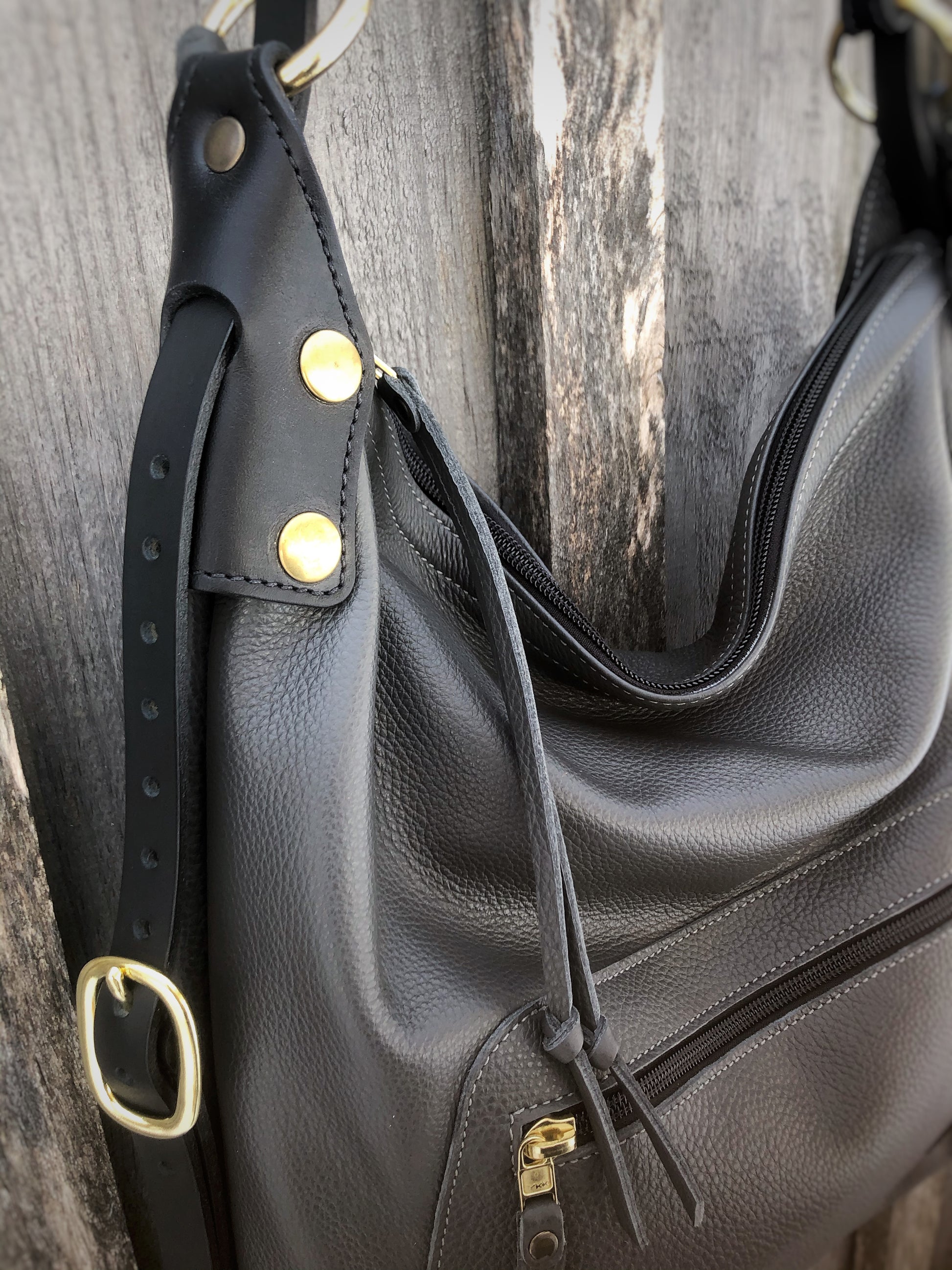 There is one large zipper pocket for quick access on the front of the bag and a large zipper pocket with patch pockets on the upper inside back panel. Securely attached to one of the strap-rings is a long discreet key lanyard that is easily stowed and accessed. The Villa is made of Italian full grain leather and strapped up with English bridle leather. The hardware is solid cast equestrian brass. All the edges are carefully hand finished making this a timeless and functional piece that will serve and age gracefully for many years to come.