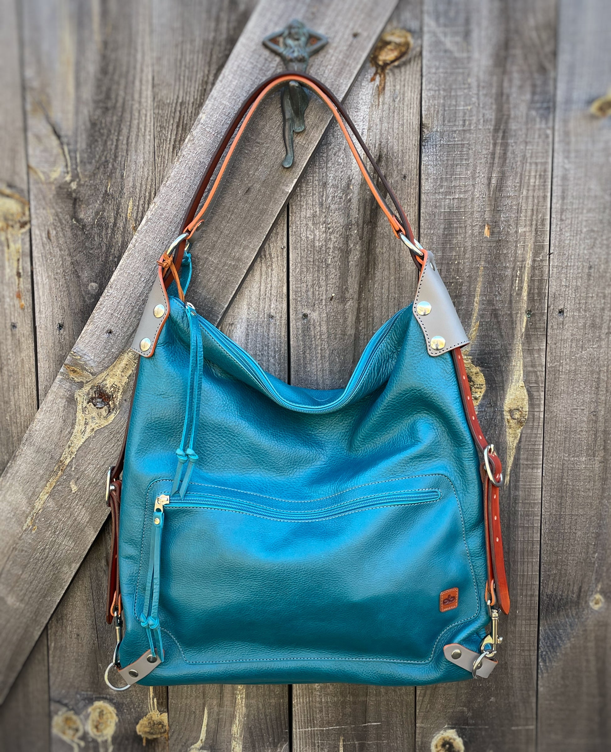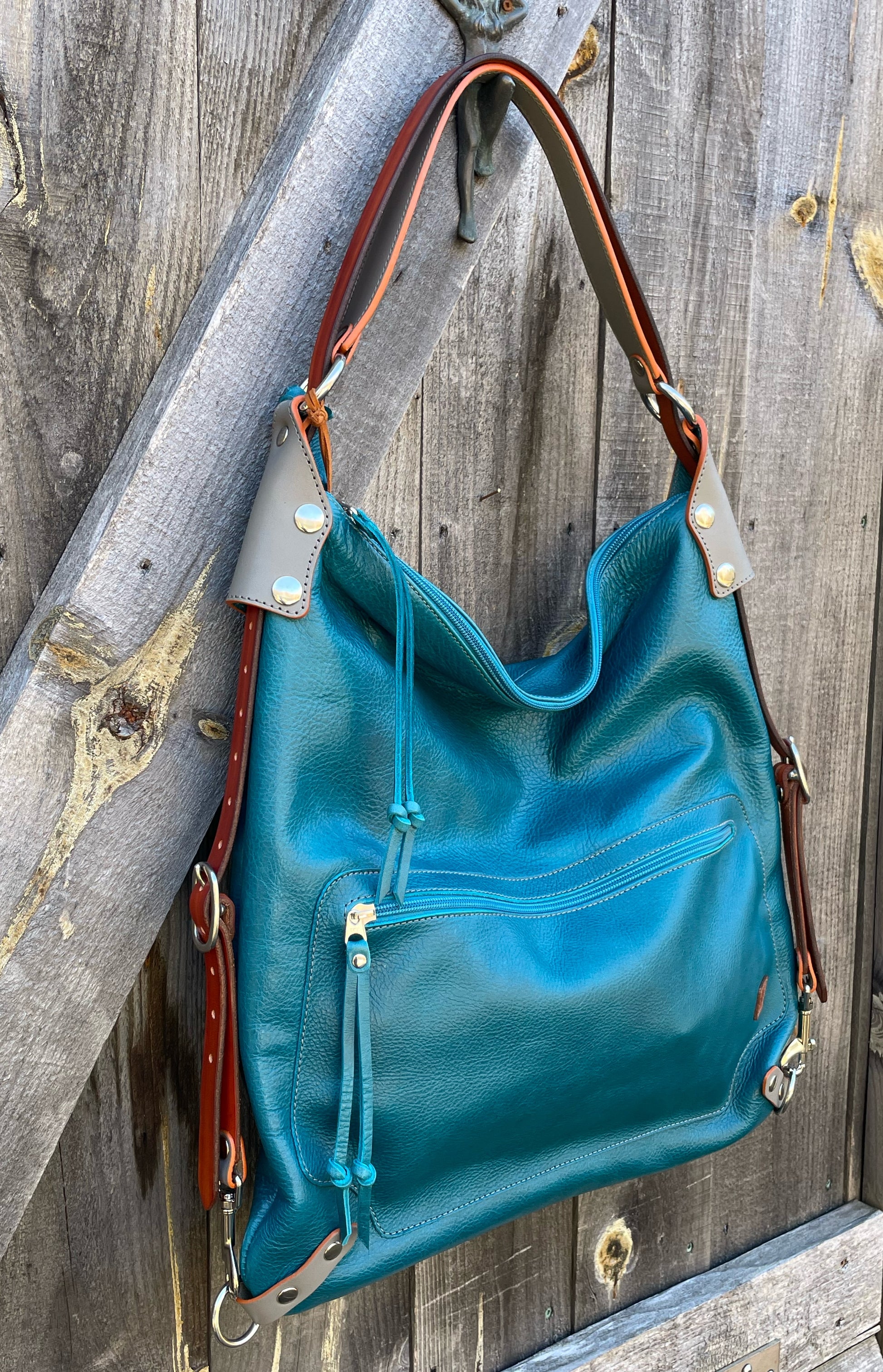 The Villa is a chic backpack and shoulder bag designed all-in-one. It carries a laptop and all your daily necessities with plenty of room to spare. There is one large zipper pocket for quick access on the front of the bag and a large zipper pocket with patch pockets on the upper inside back panel. Securely attached to one of the strap-rings is a long discreet key lanyard that is easily stowed and accessed. The Villa is made of Italian full grain leather and strapped up with English bridle leather. The hardware is solid, cast equestrian stainless steel. All the edges are carefully hand finished making this a timeless and functional piece that will serve and age gracefully for many years to come.