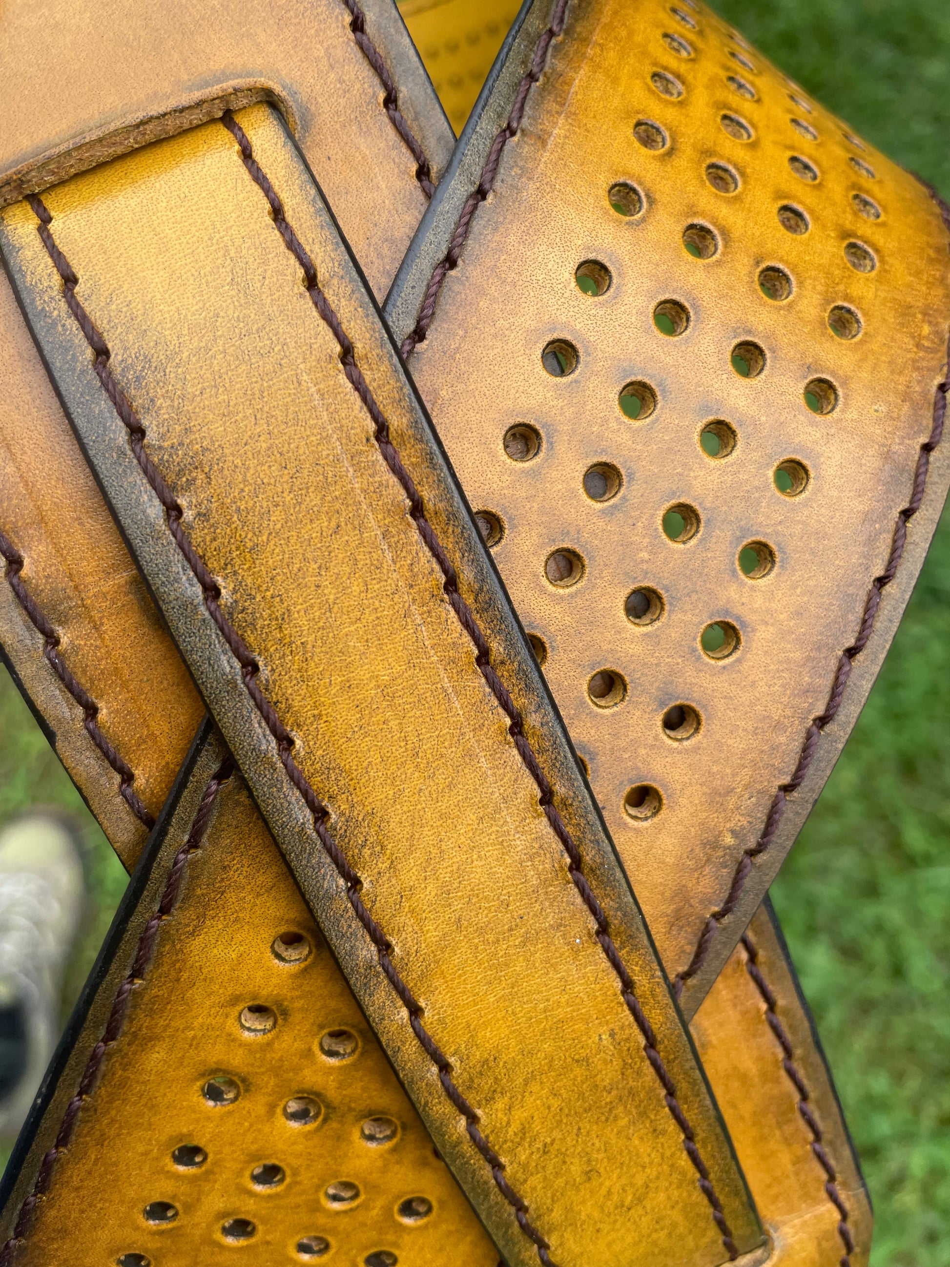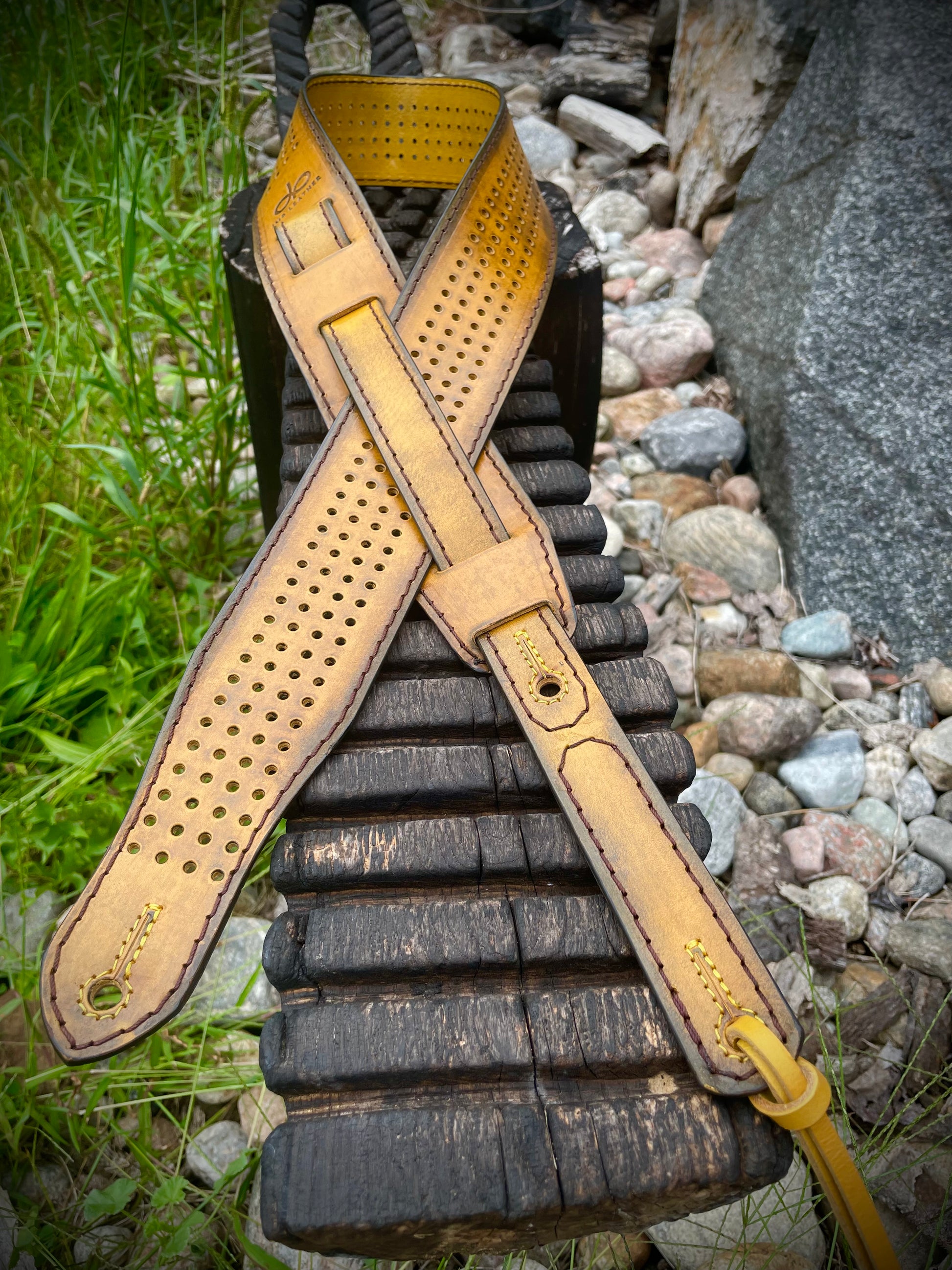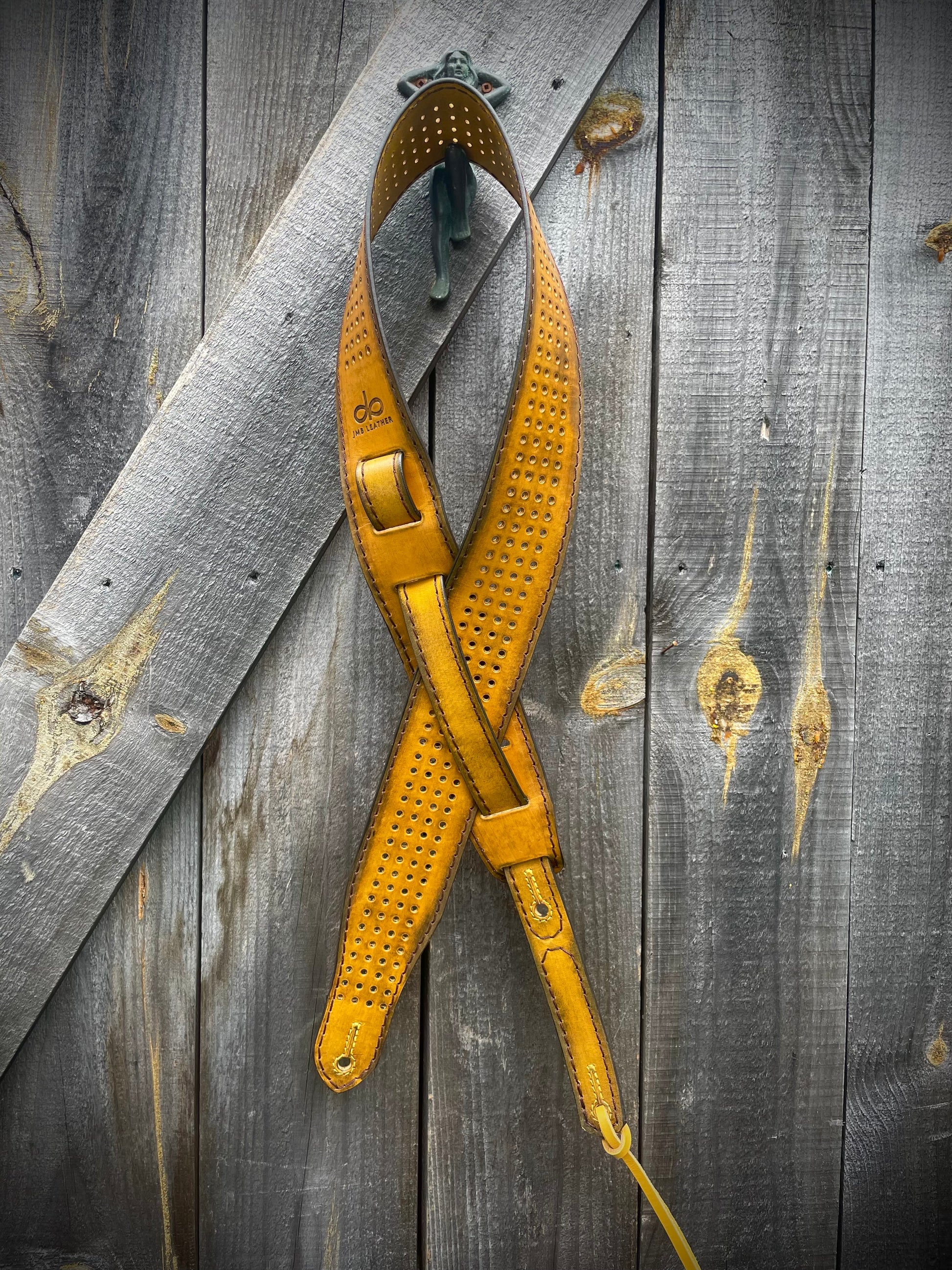 This premium SG Guitar Strap is crafted using vegetable tanned leather making it comfortable and breathable with burnished edges. For added visual appeal, it is also fully perforated. Its vintage custom rust finish will improve with age and use, and is adjustable from 44"-58", 2.5" wide. For greater length, customization is available. Just add in the notes field at check out.