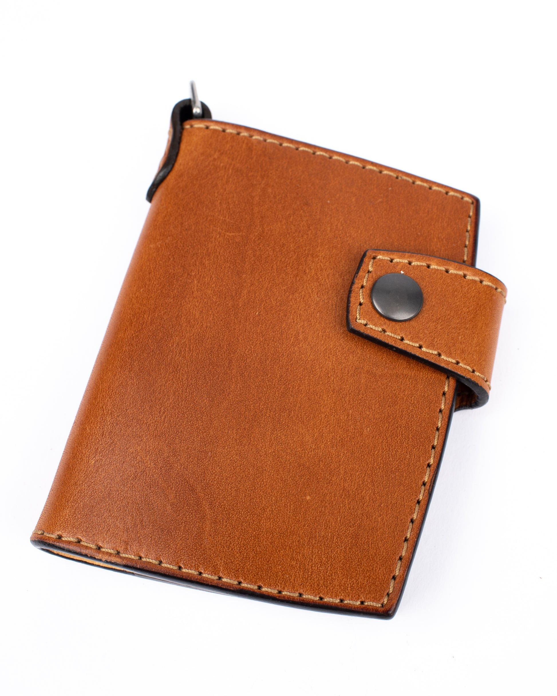 The Yanagi snap wallet features full vegetable tanned leather with carefully beveled and burnished edges making this a piece that will age beautifully telling your story. It has six interior pockets and unlike some wallets it will not lose any cards or cash when folded. It will hold easily 20 plus cards while keeping a slim profile. It has an added snap closure and cast stainless-steel loop for a lanyard.
