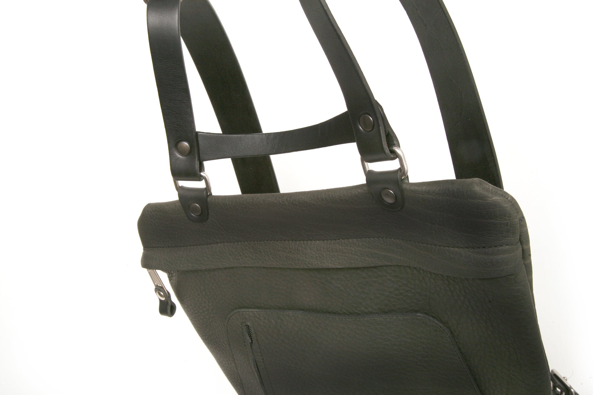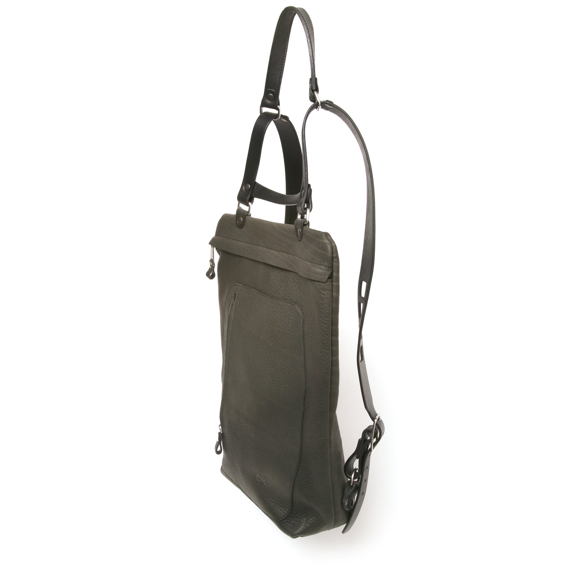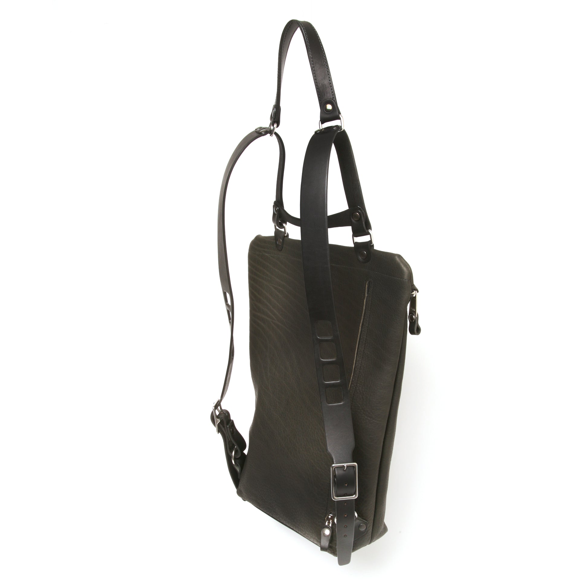 The Yeti is a backpack with a sliding shoulder rest that allows you to carry the bag under your arm and with its low profile at the top you can easily access the zippered compartments. It features comfortable wide shoulder straps and stainless-steel hardware throughout. There is a 35cm zippered rear pocket for a computer as well as a quick access pocket on the front and thick skid plate on the bottom, giving structure and protection. The main compartment boasts the biggest, toughest zipper YKK makes ensuring that although lightweight this bag is made for the long haul. On the inside top of bag there is another pocket along with two card compartments.