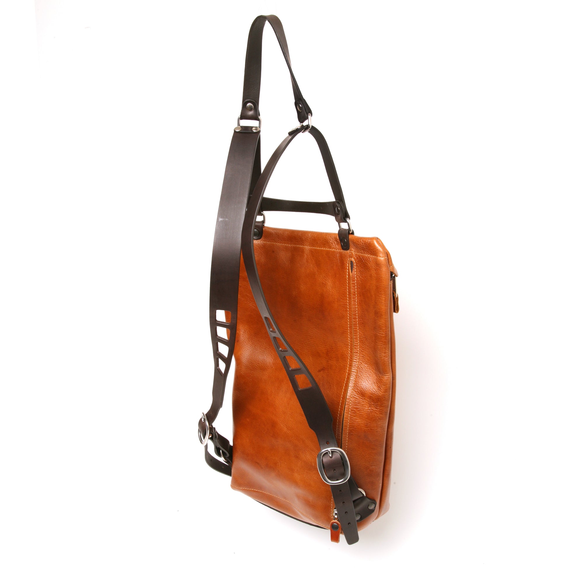 The Yeti is a backpack with a sliding shoulder rest that allows you to carry the bag under your arm and with its low profile at the top you can easily access the zippered compartments. It features comfortable wide shoulder straps and stainless-steel hardware throughout. There is a 35cm zippered rear pocket for a computer as well as a quick access pocket on the front and thick skid plate on the bottom, giving structure and protection. The main compartment boasts the biggest, toughest zipper YKK makes ensuring that although lightweight this bag is made for the long haul. On the inside top of bag there is another pocket along with two card compartments.